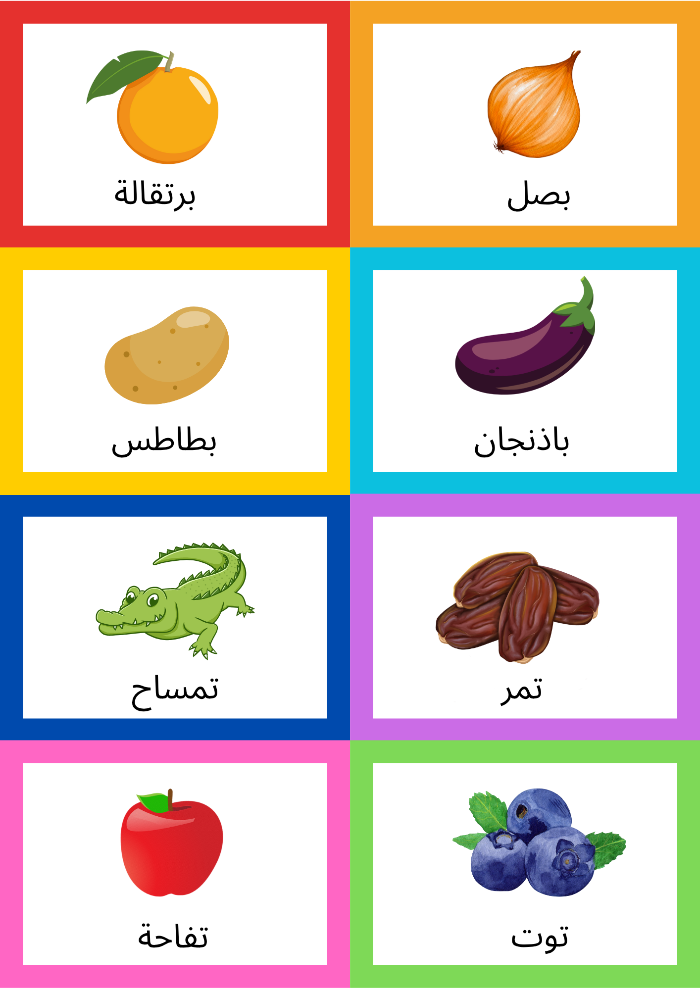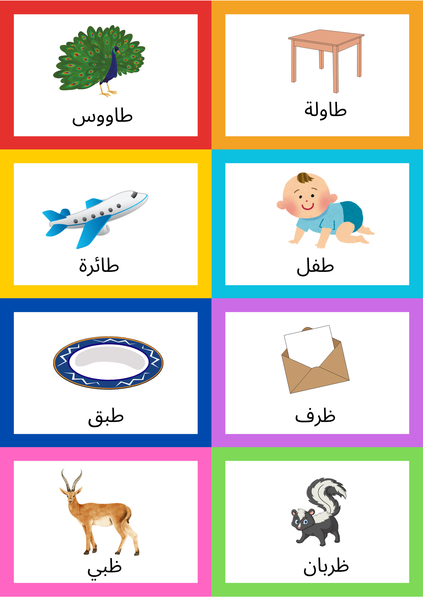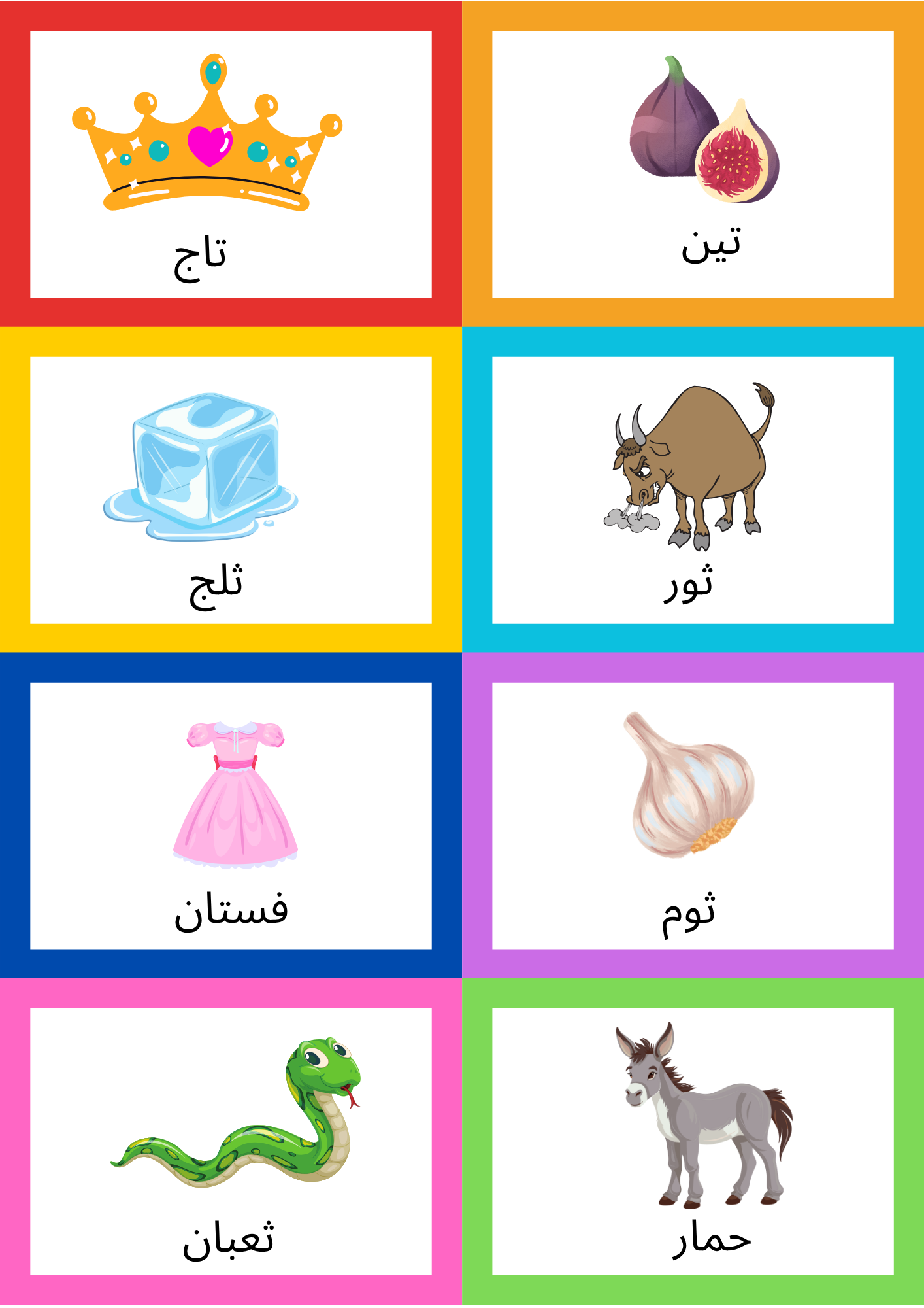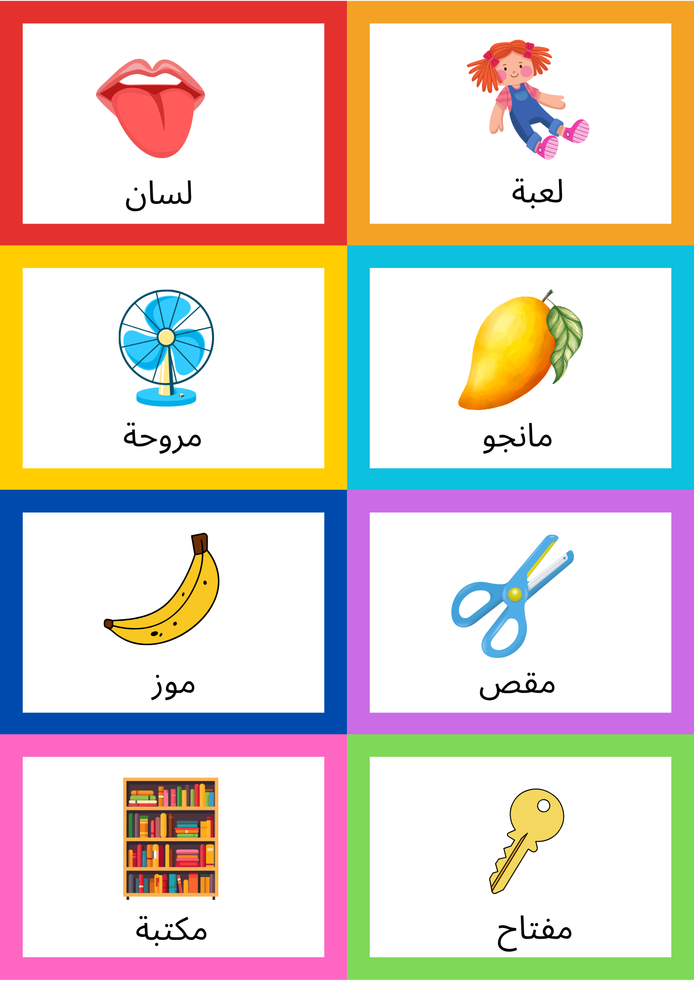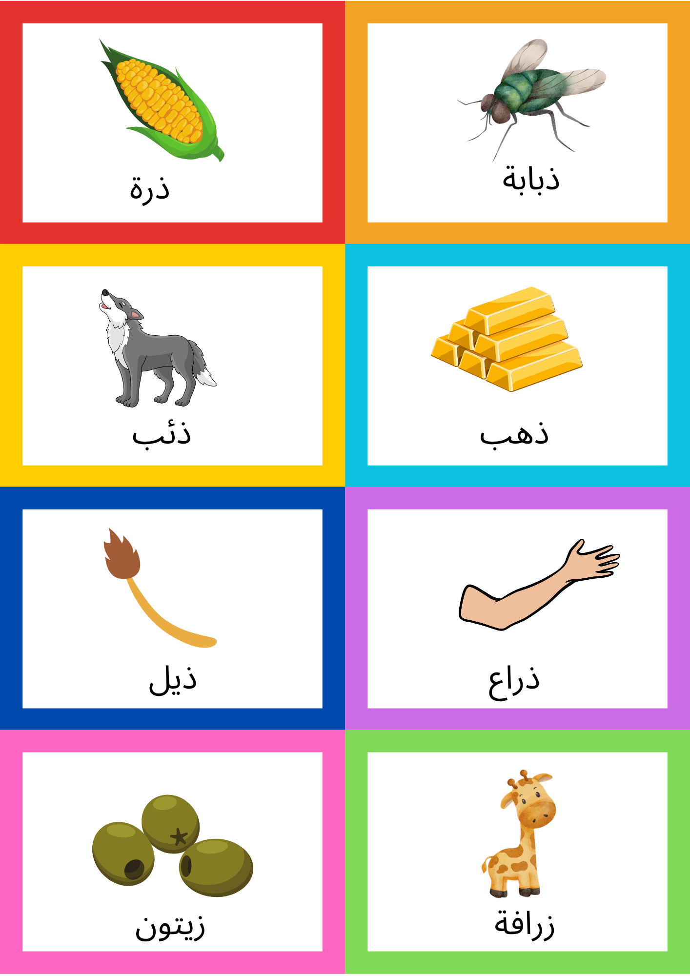 بطاقات تعليمية لتوسيع مفردات الطفل وتعزيز وعيه بأصوات الحروف العربية بطريقة تفاعلية وممتعة.