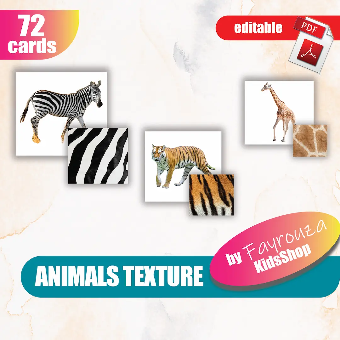 🦓 A set of large cards displaying various animals with different colors and patterns.
