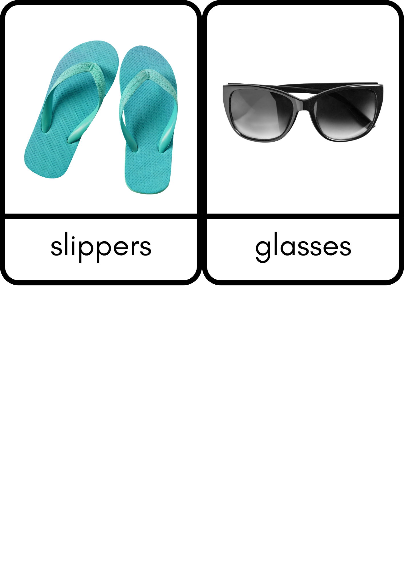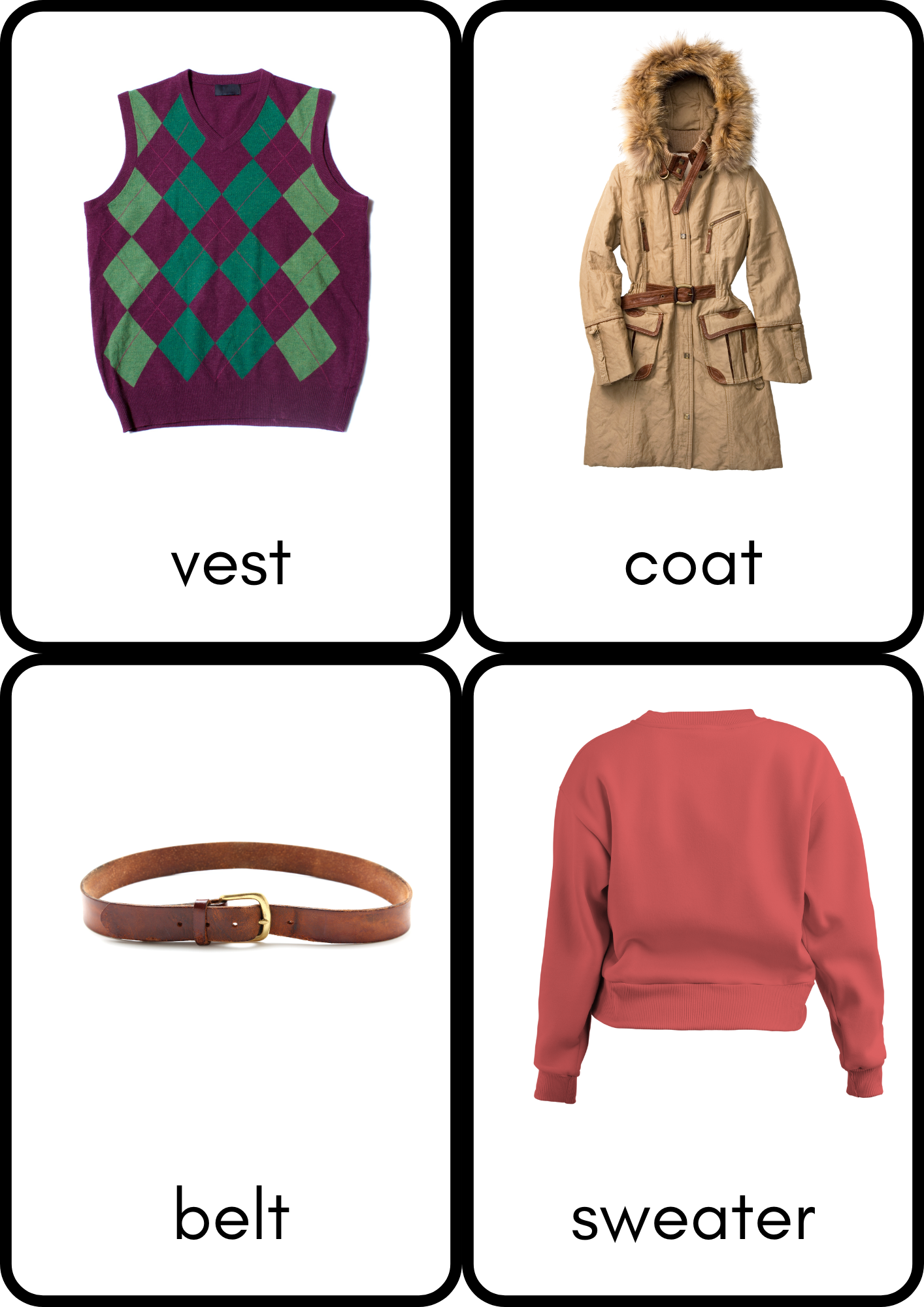 Main card: A card with a picture of a clothing item and its name written clearly underneath.
