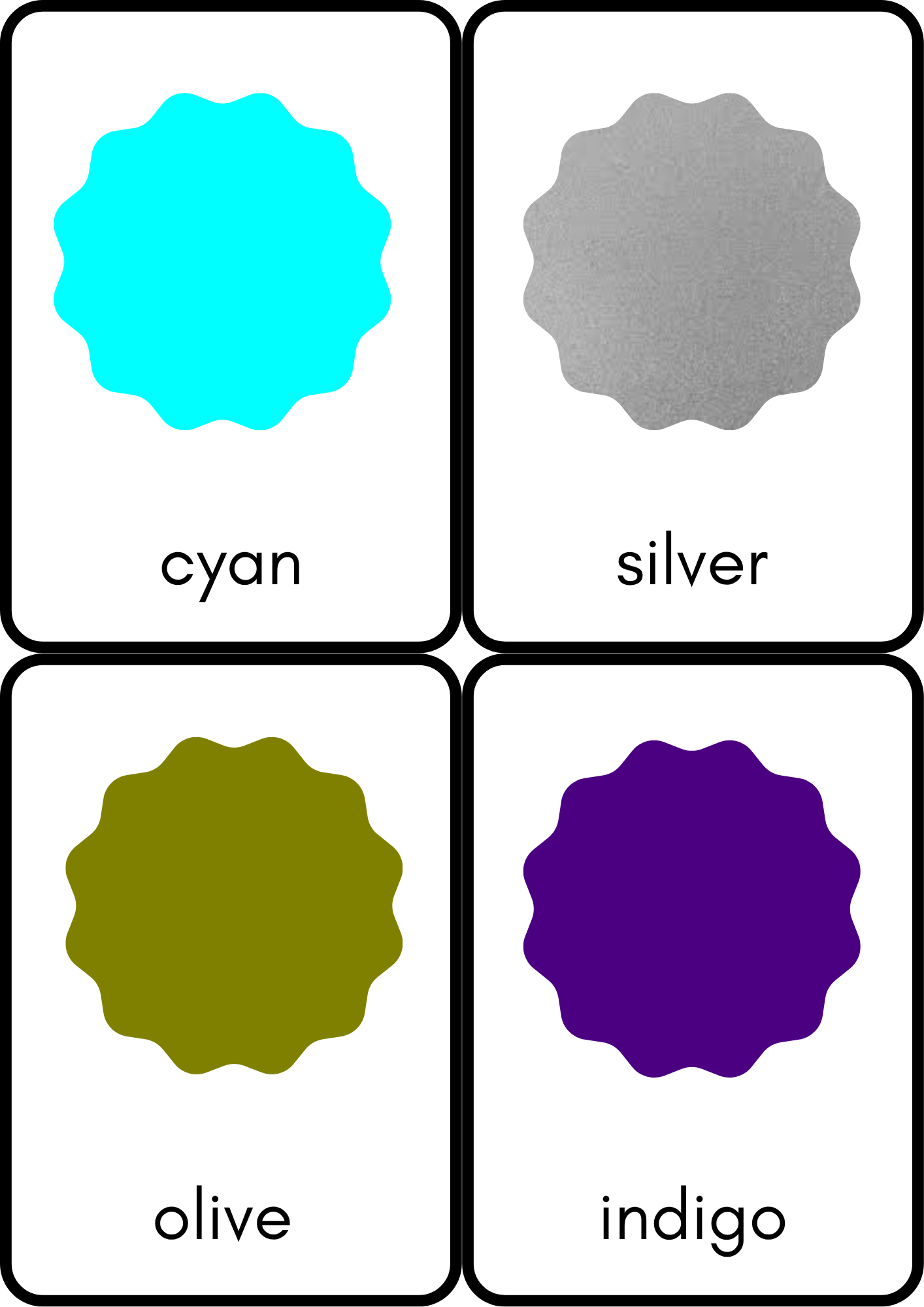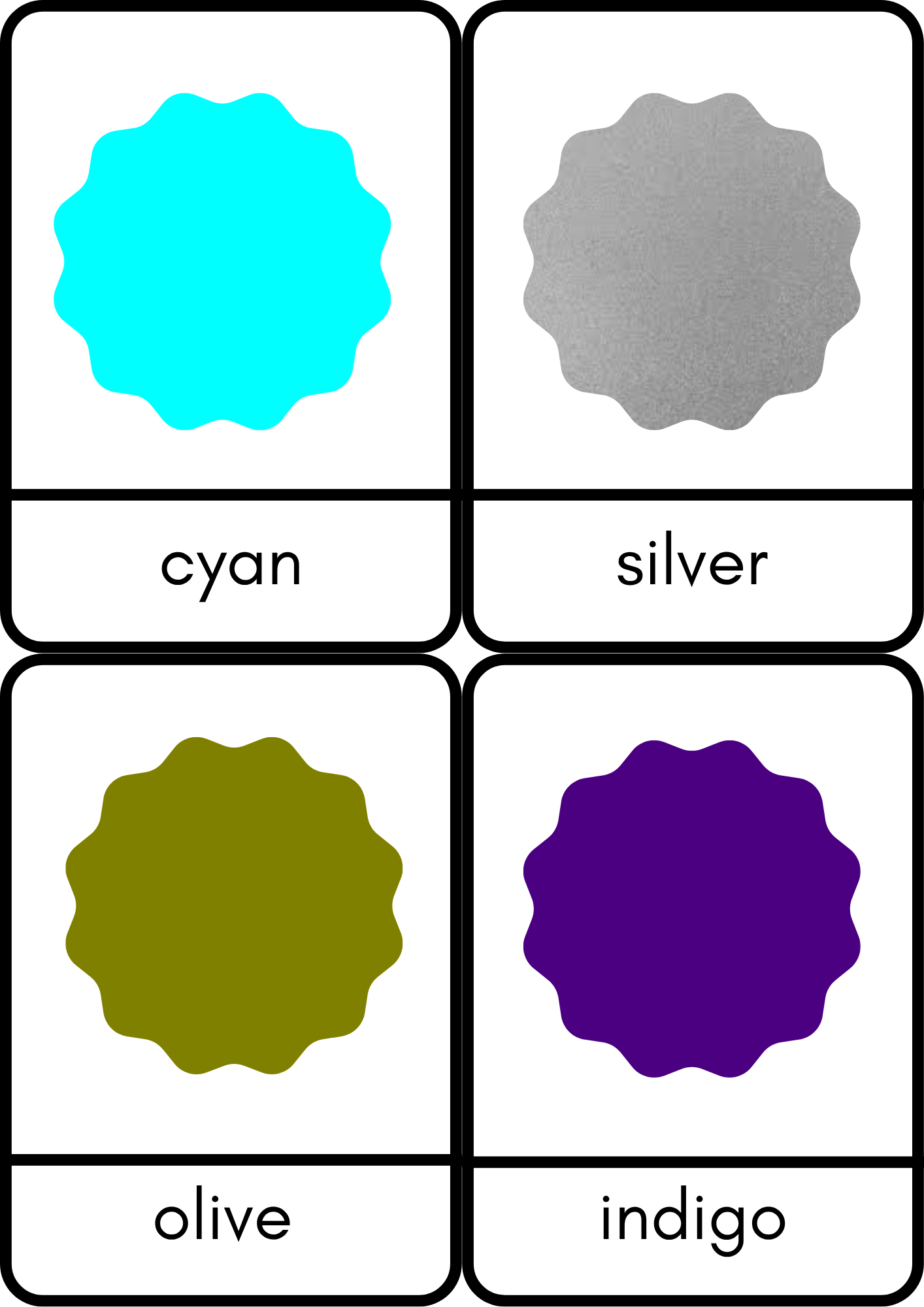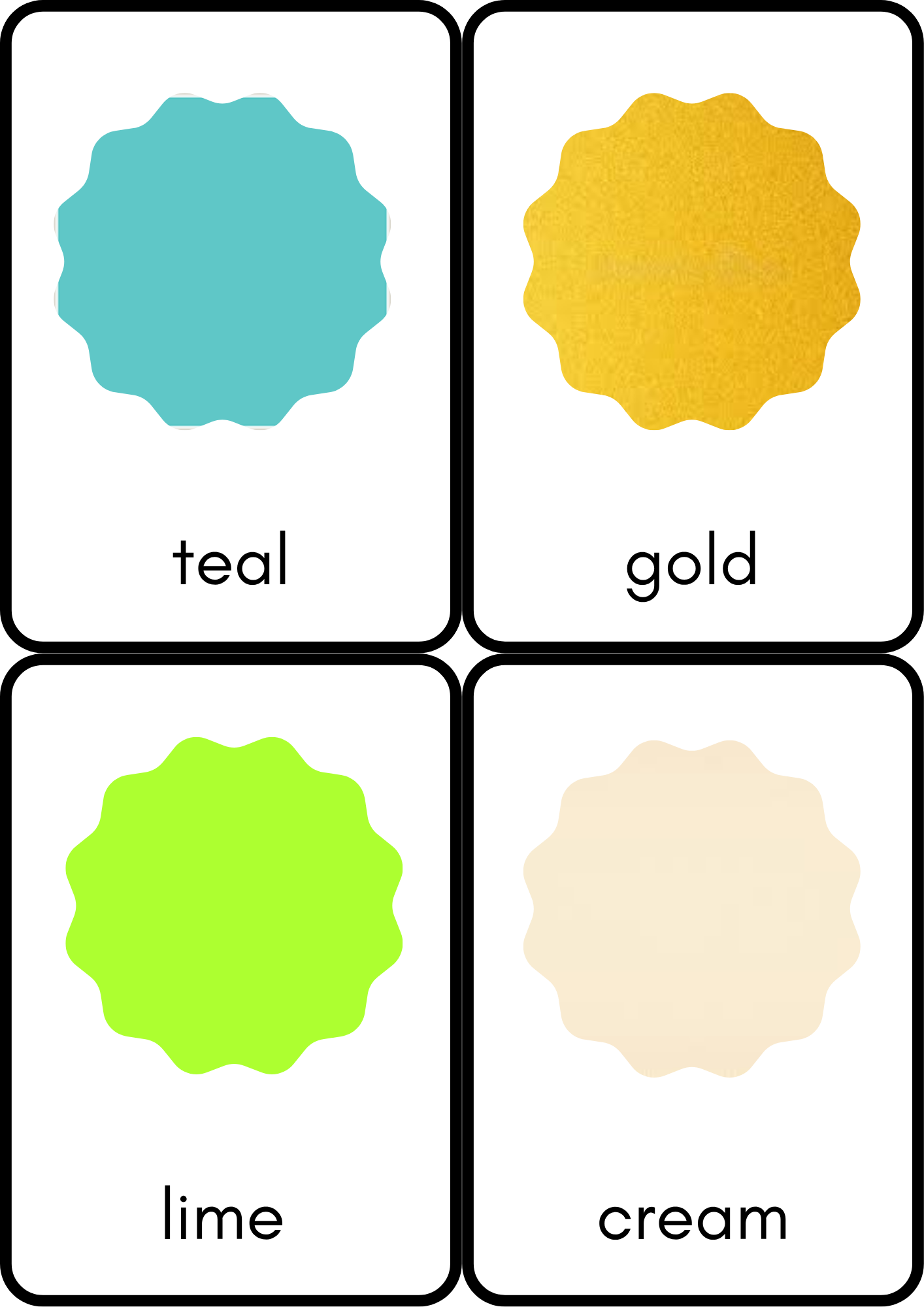 Main card: A card featuring a color swatch or object with the color name written clearly underneath.