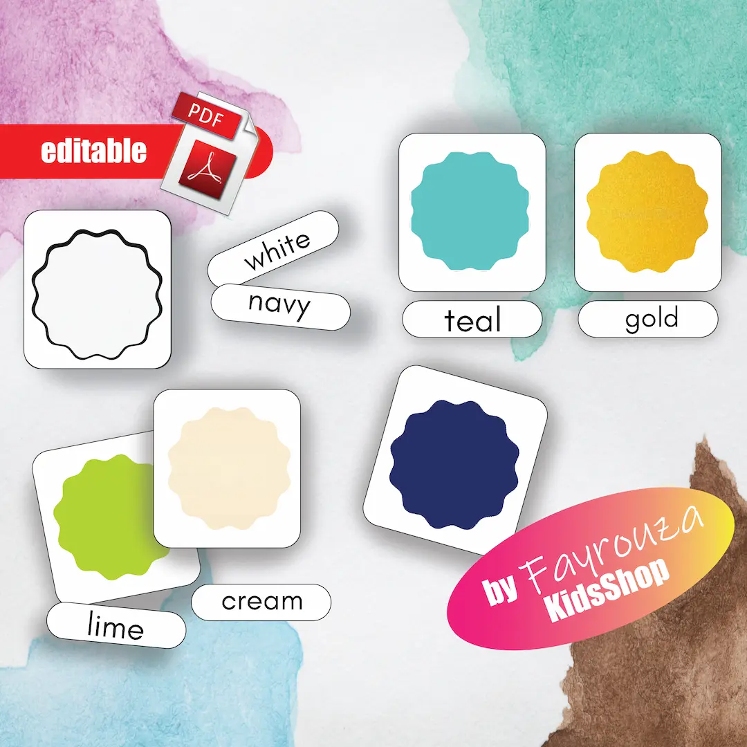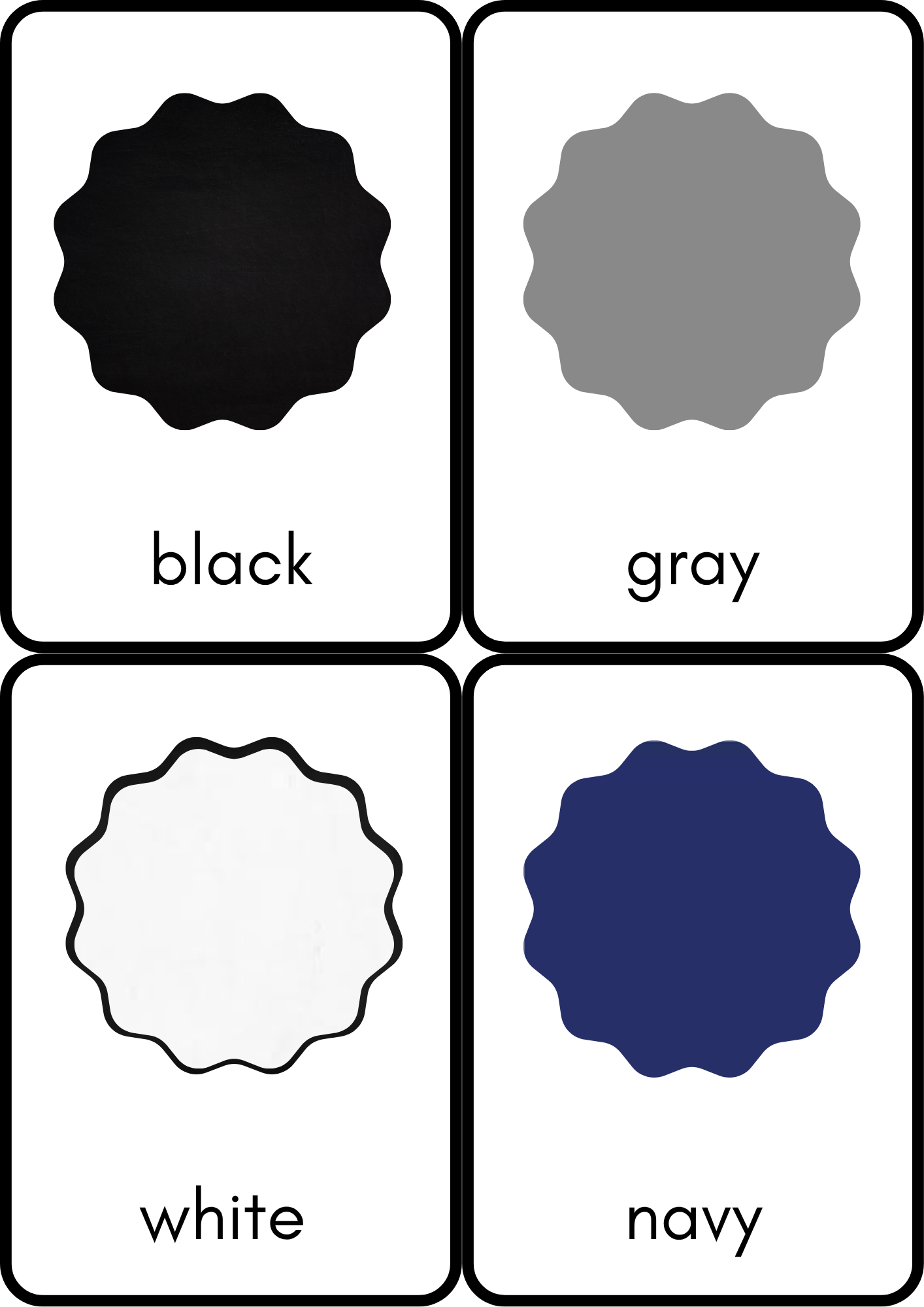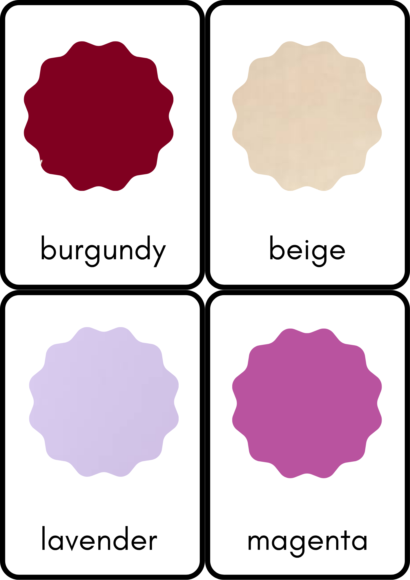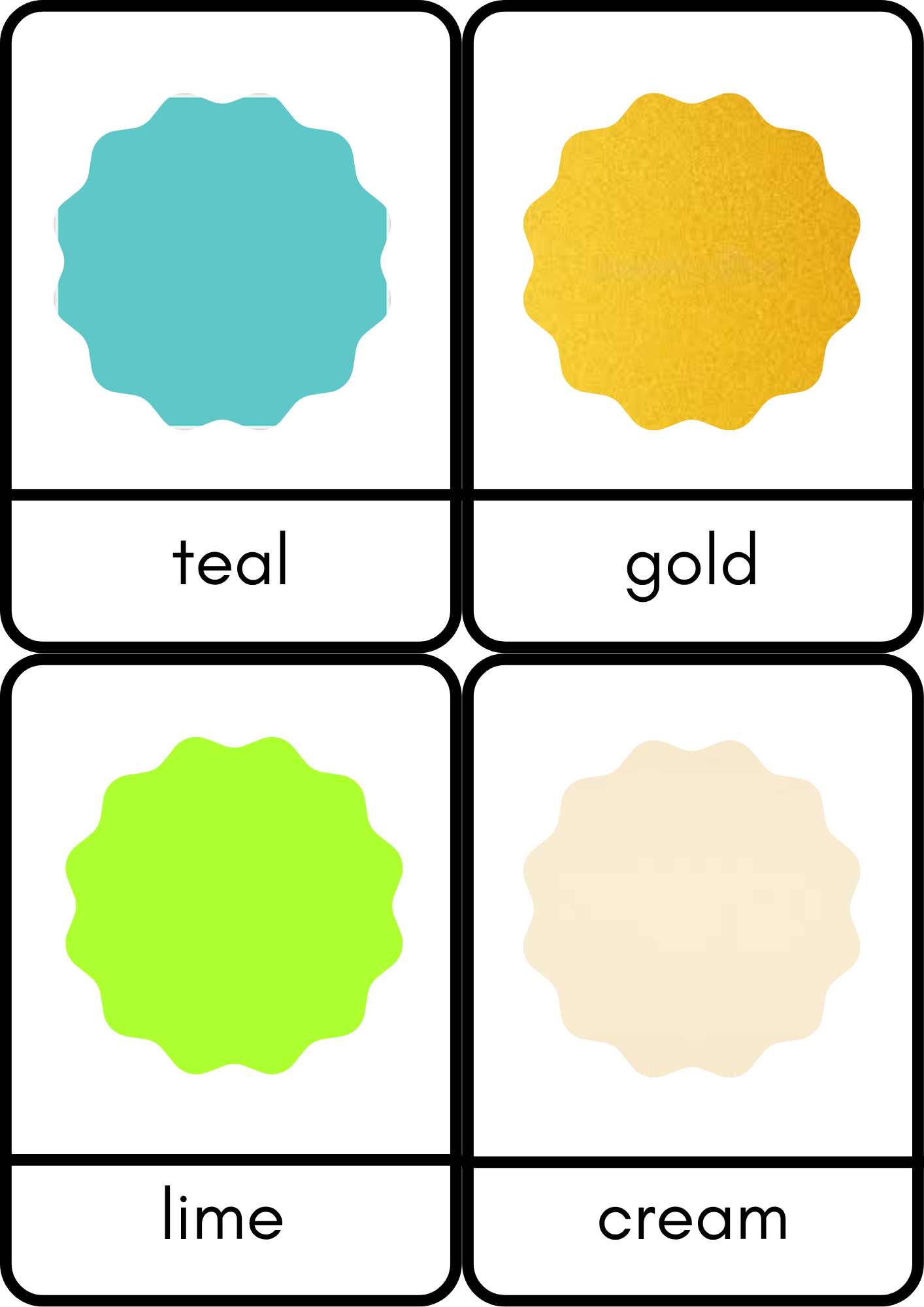 Main card: A card featuring a color swatch or object with the color name written clearly underneath.