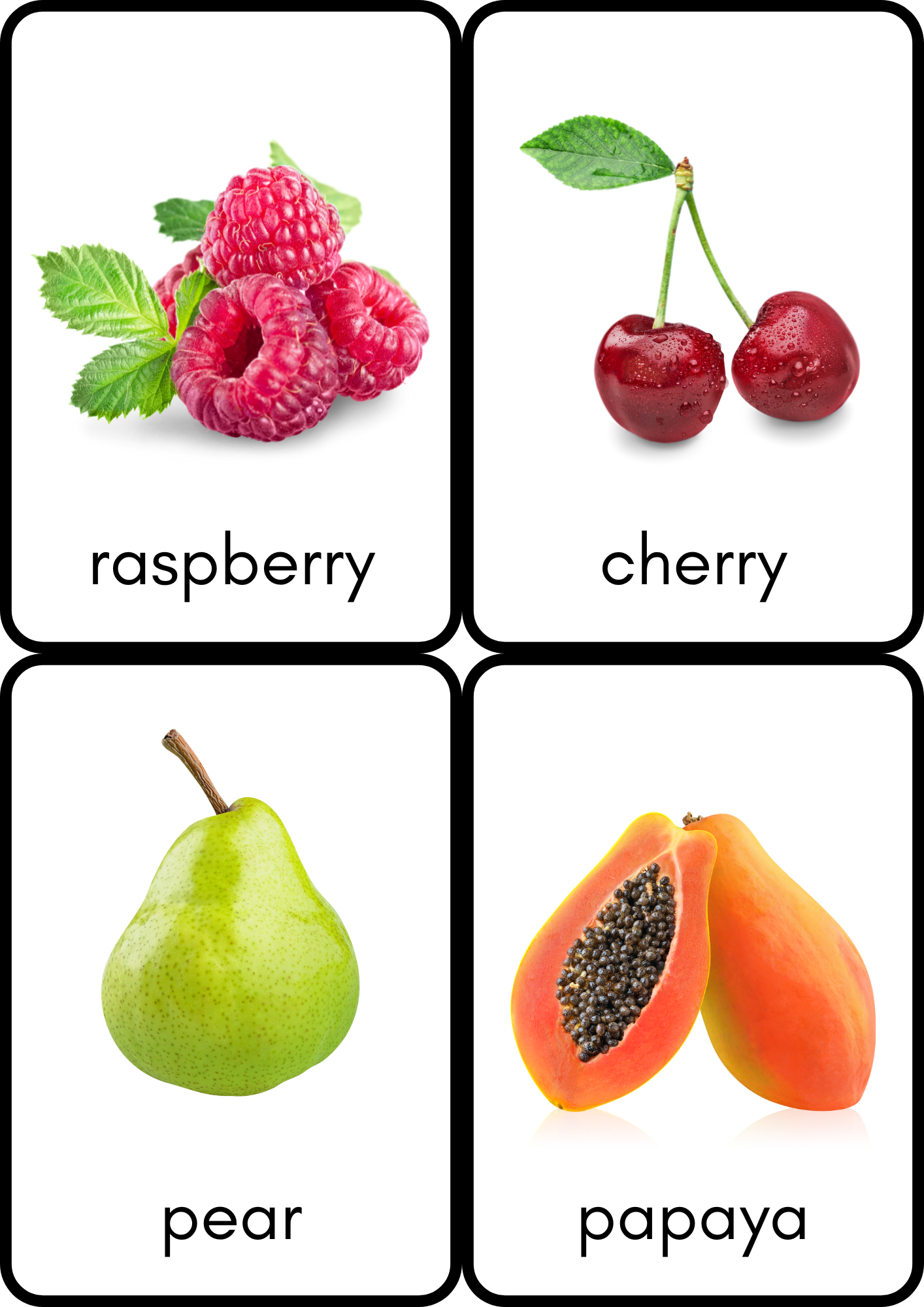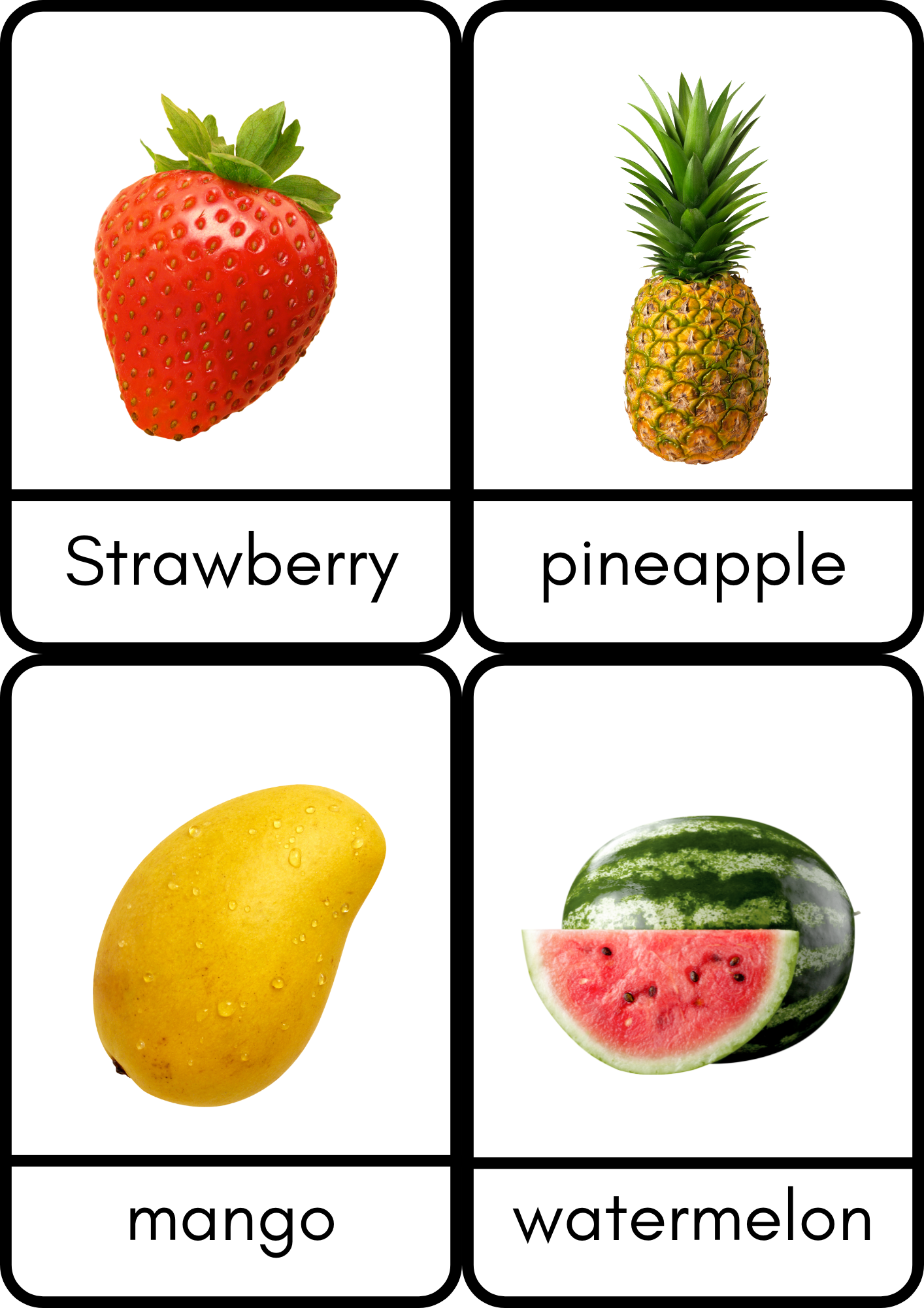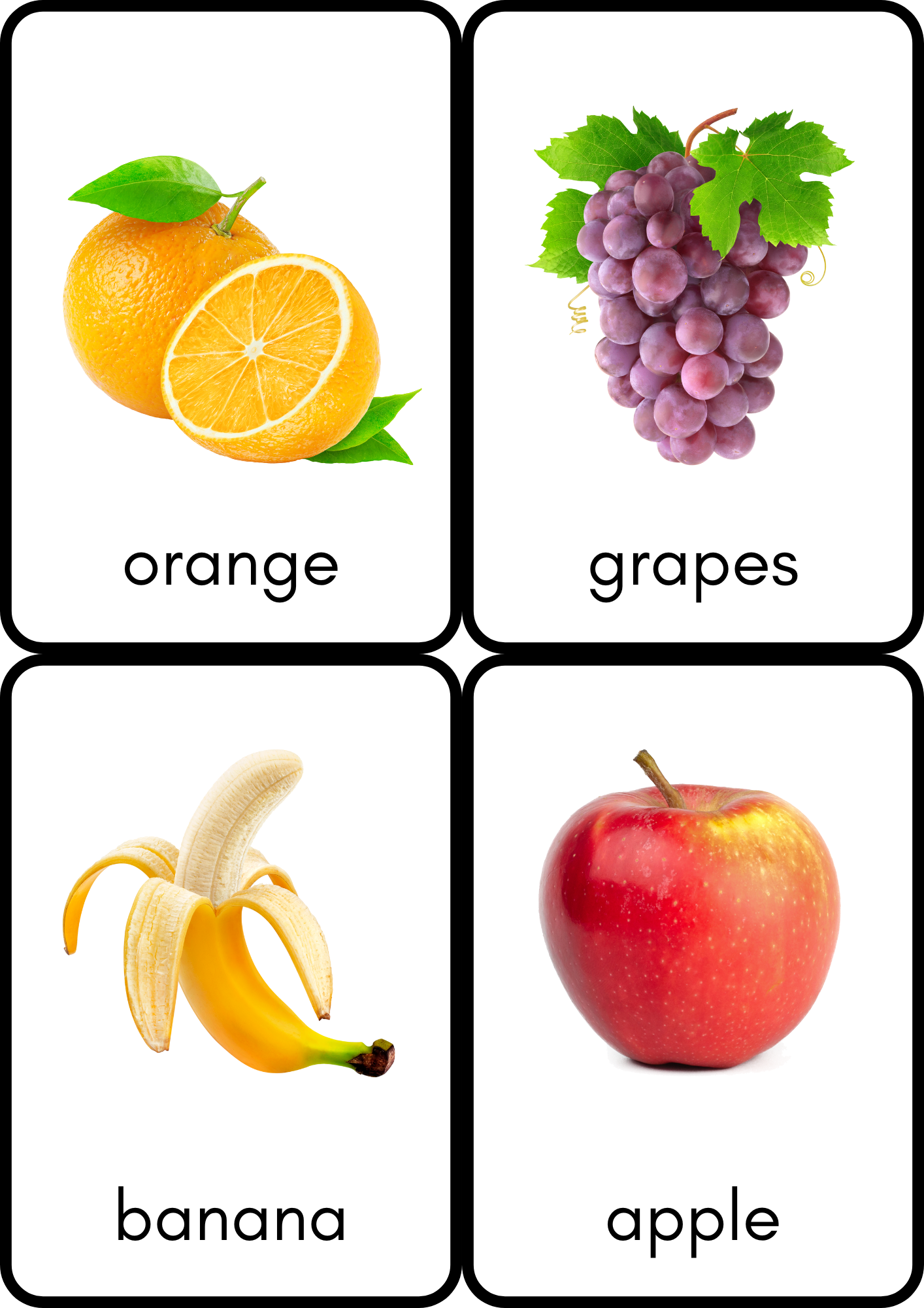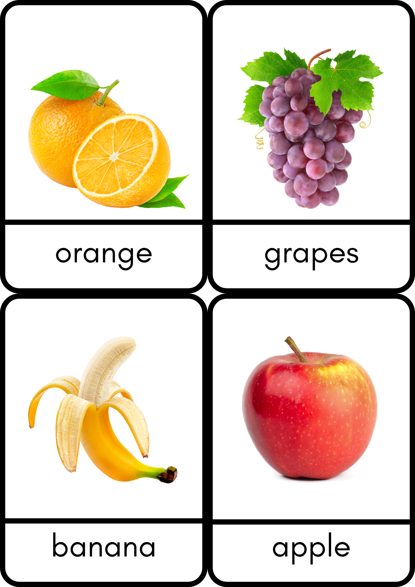 • Main card: A card with a picture of a fruit and its name written clearly underneath.
