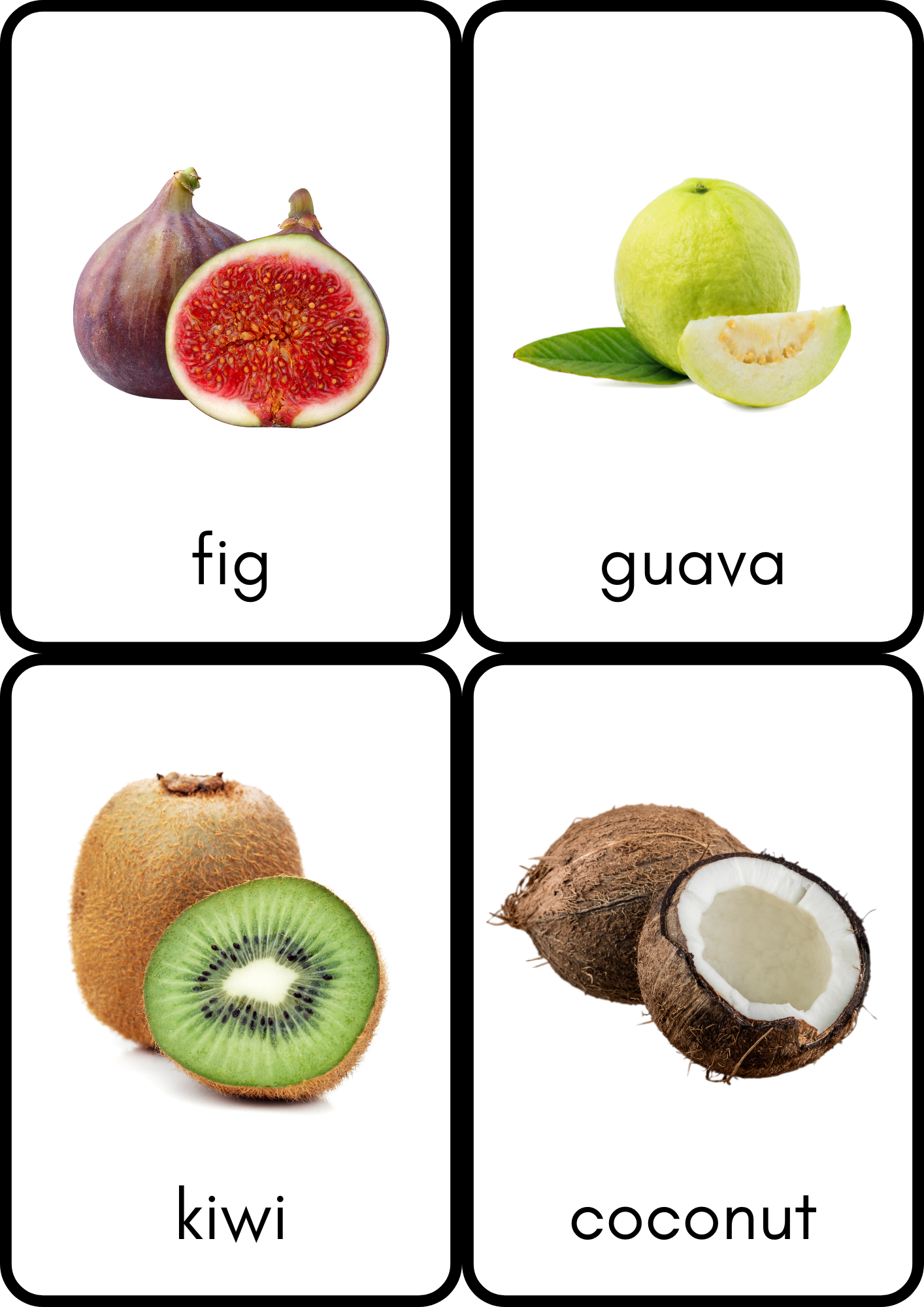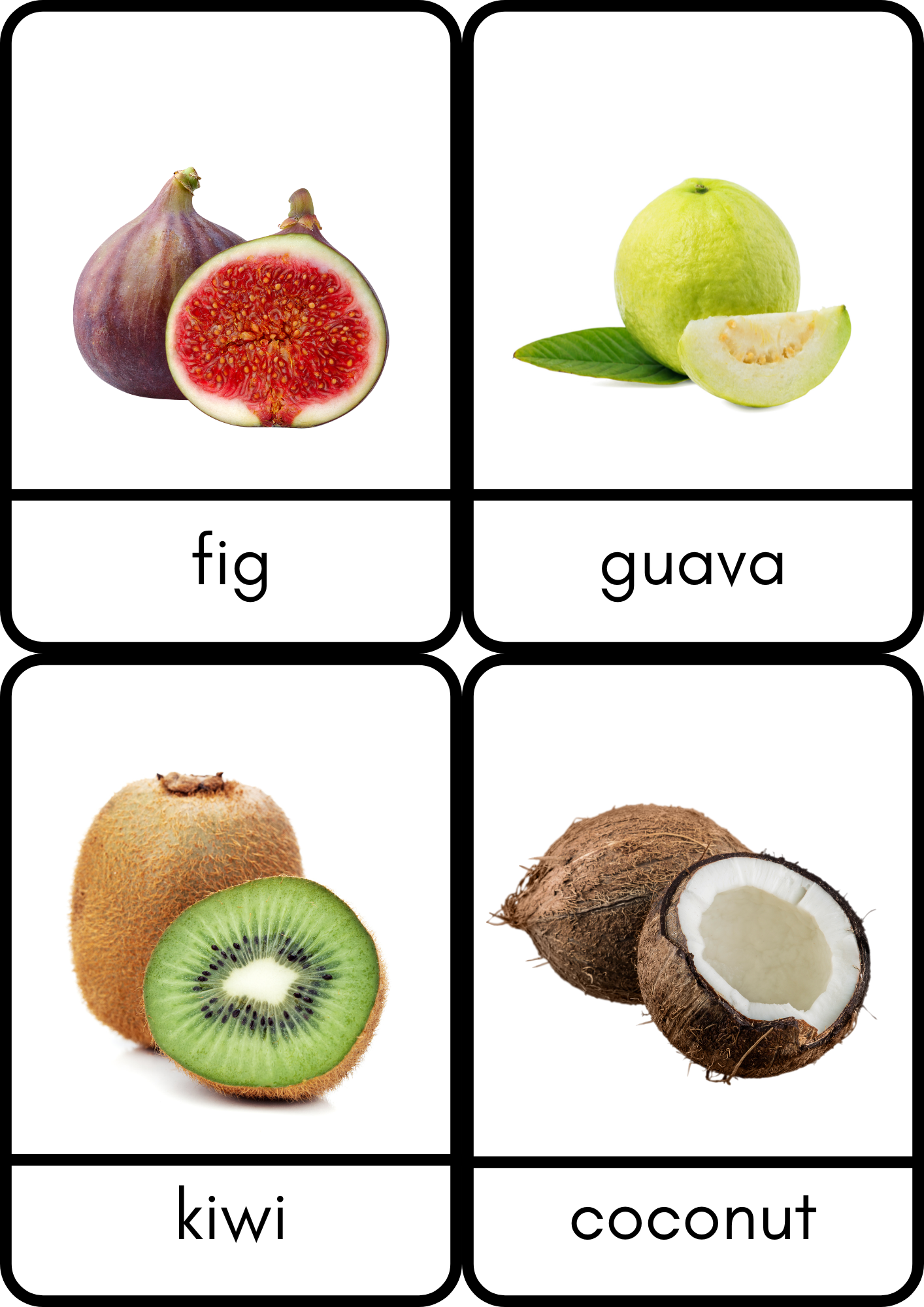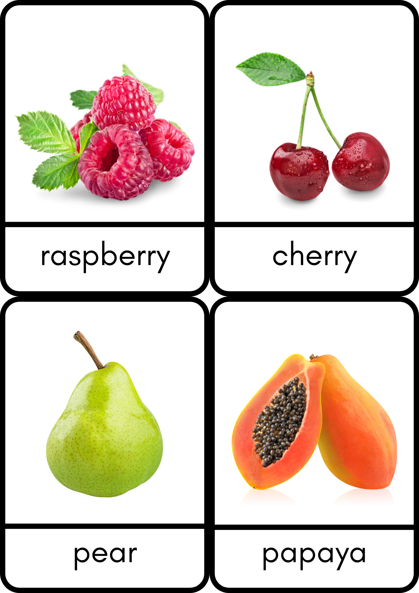 • Main card: A card with a picture of a fruit and its name written clearly underneath.