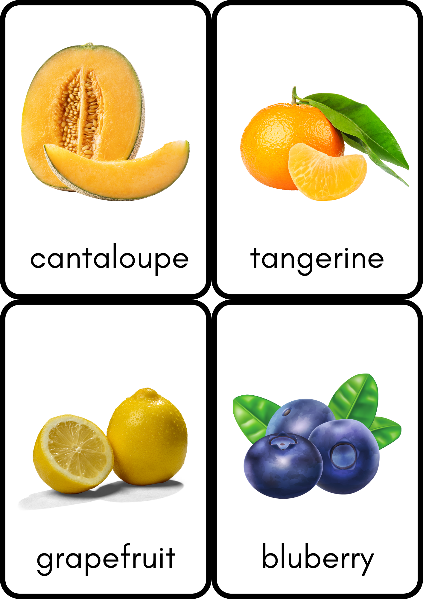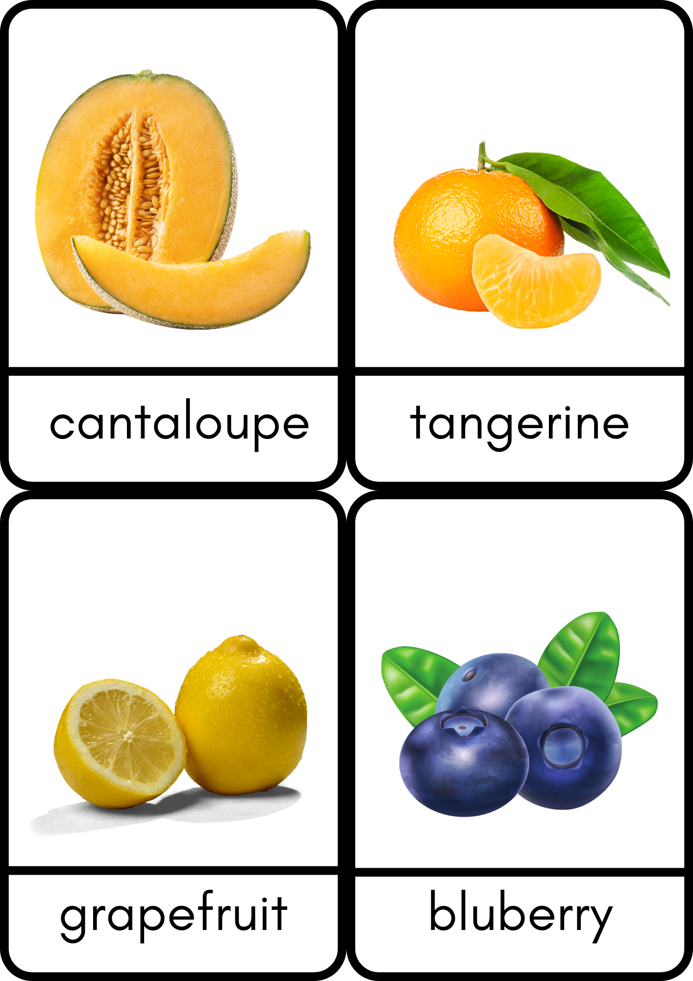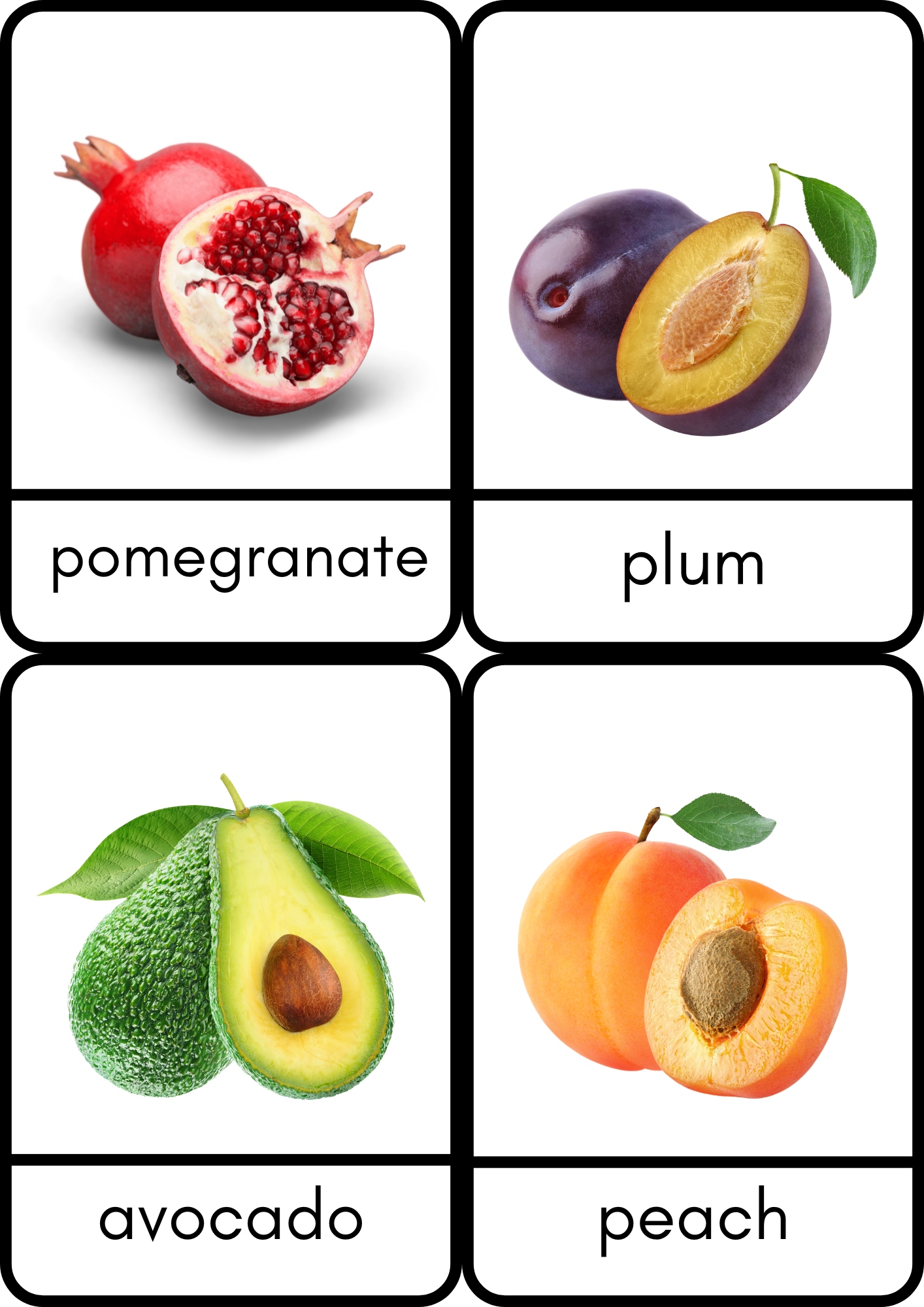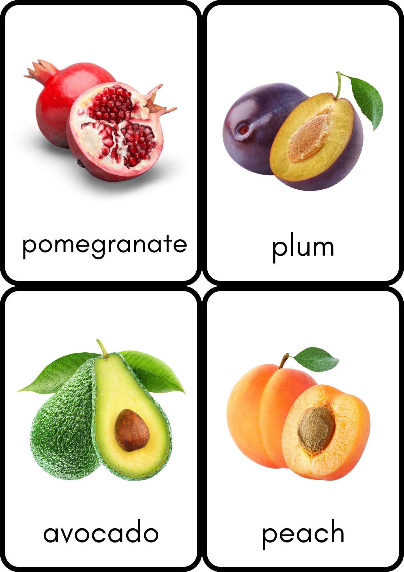 • Main card: A card with a picture of a fruit and its name written clearly underneath.
