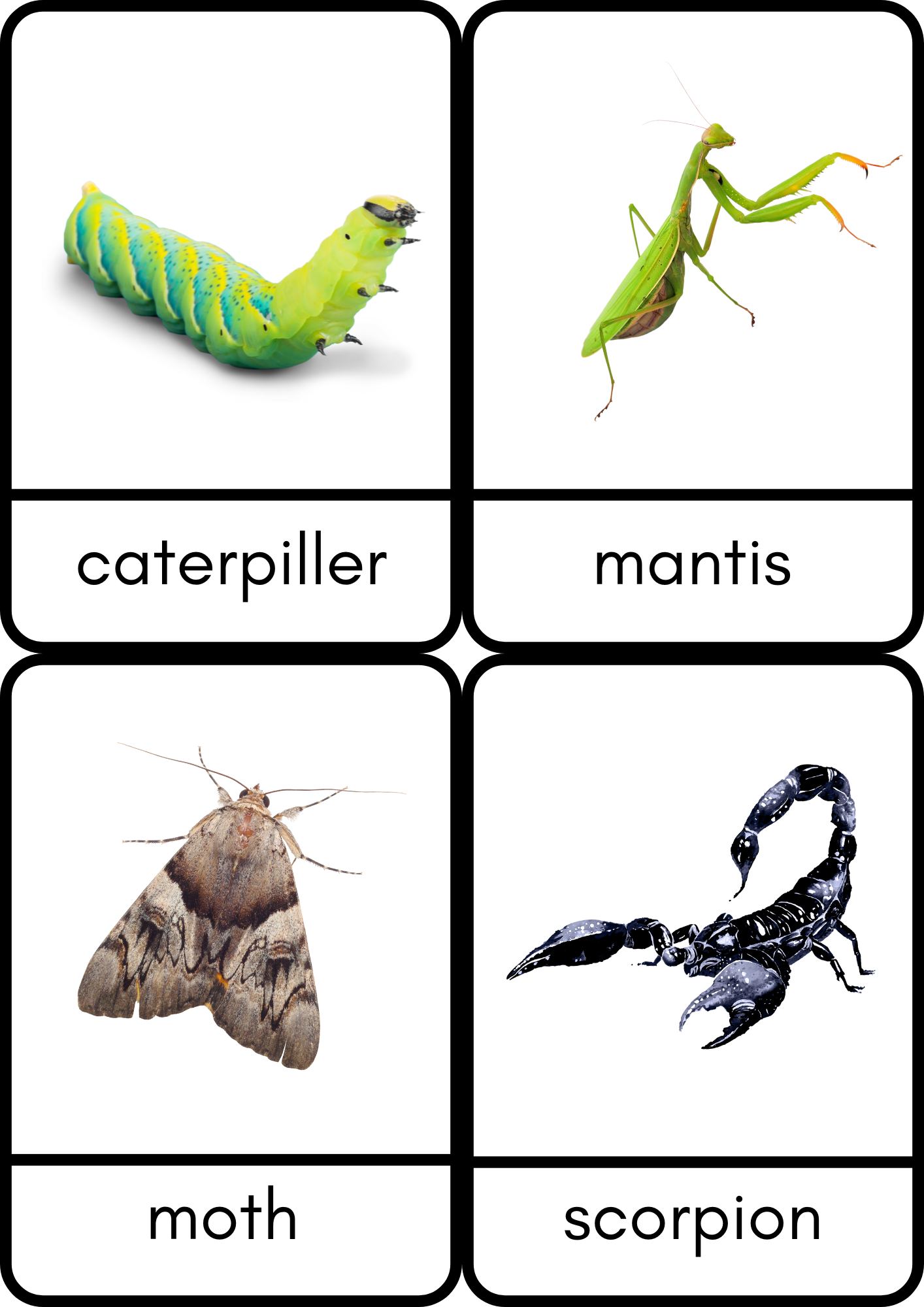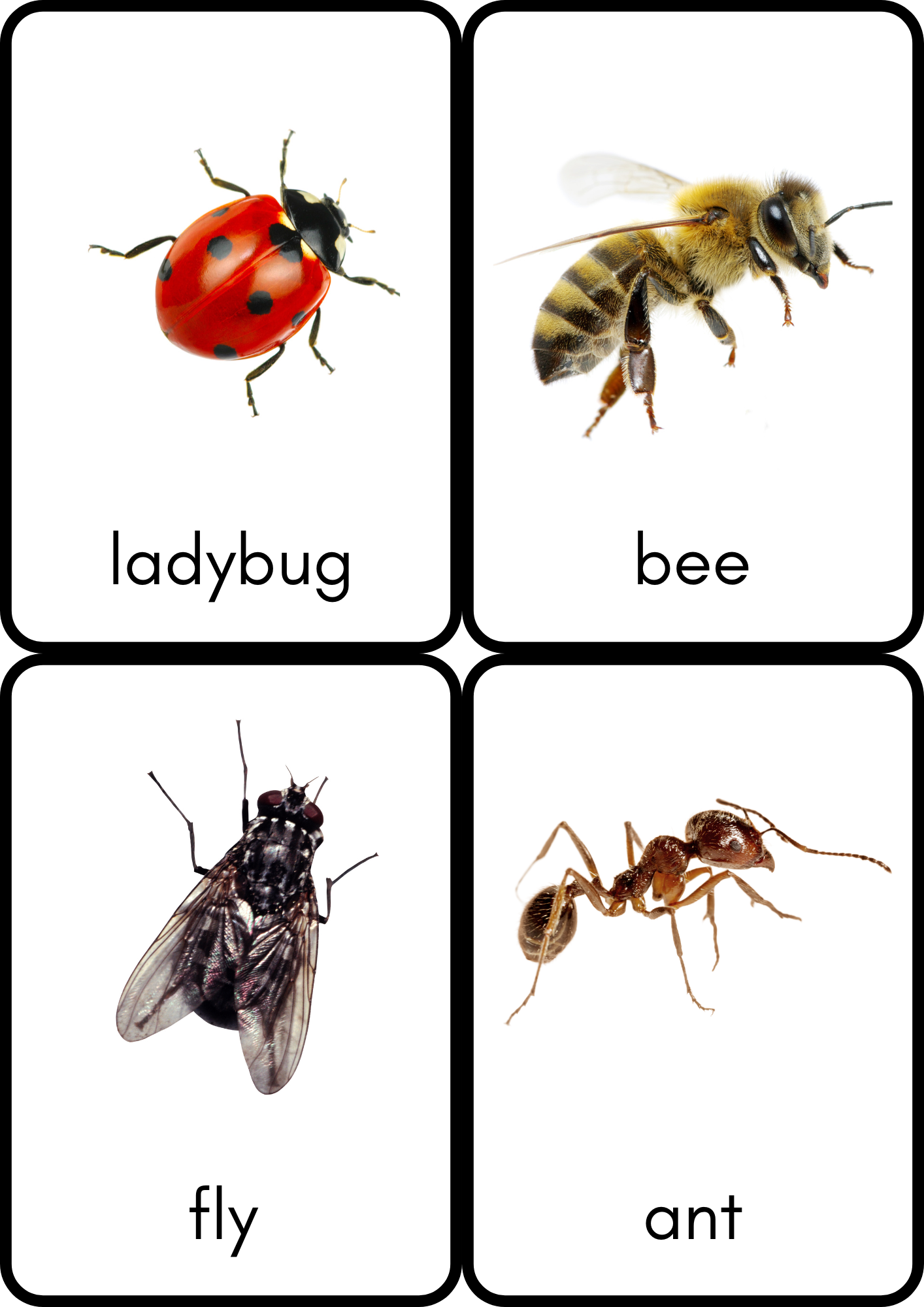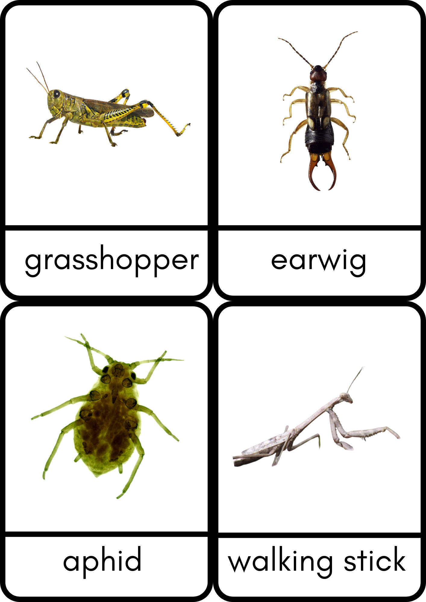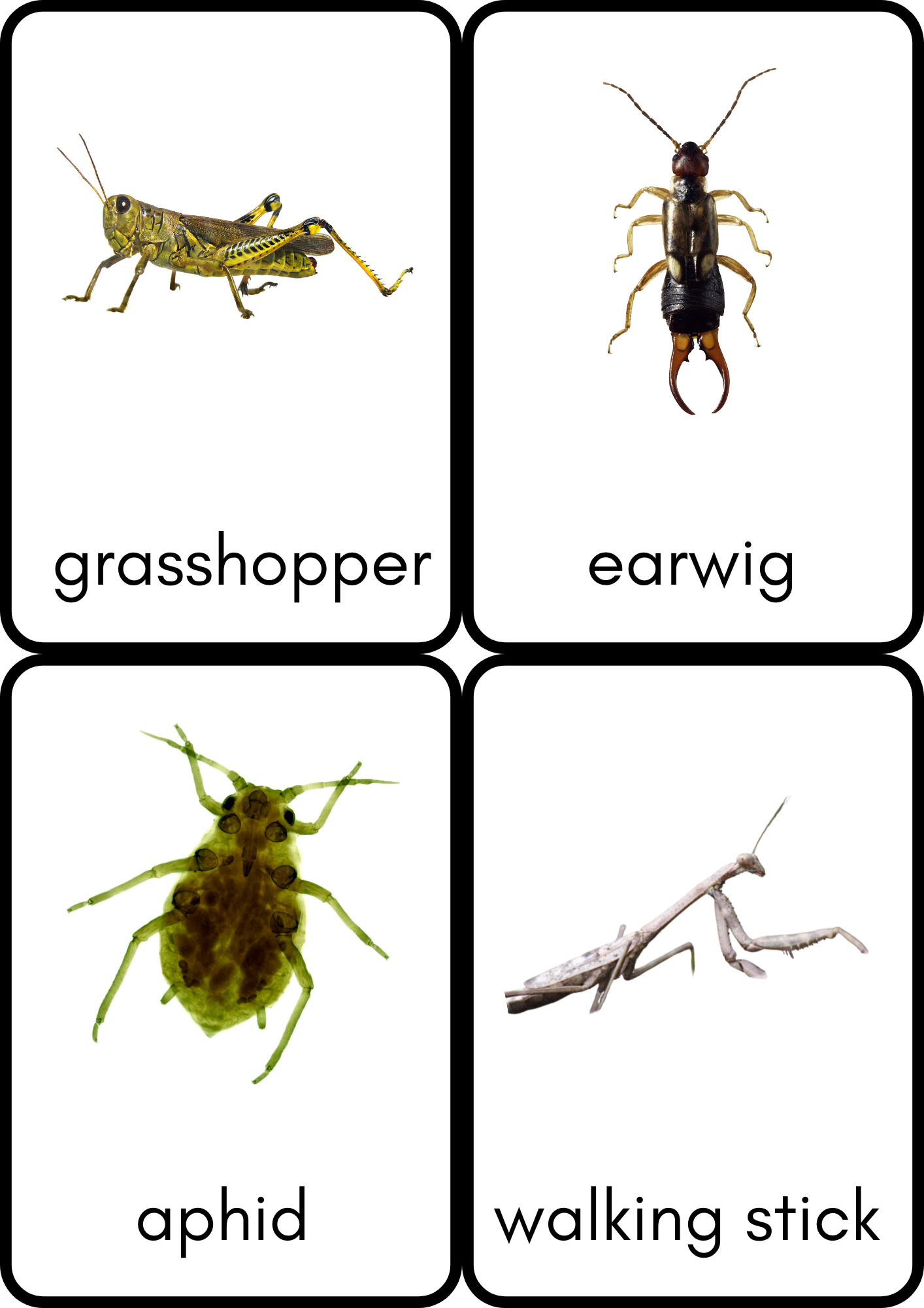 Main card: Features a picture of an insect with its name written clearly underneath.