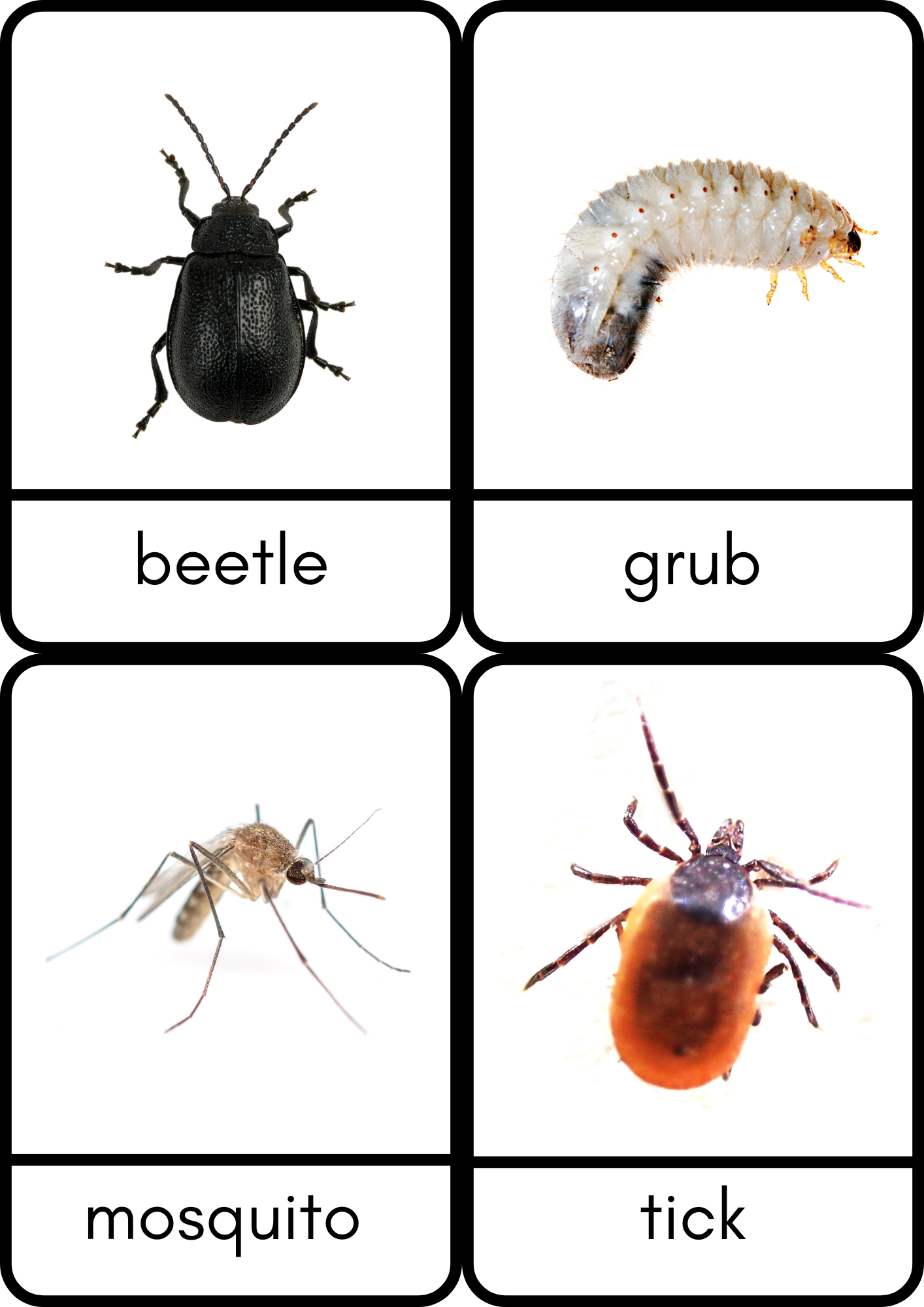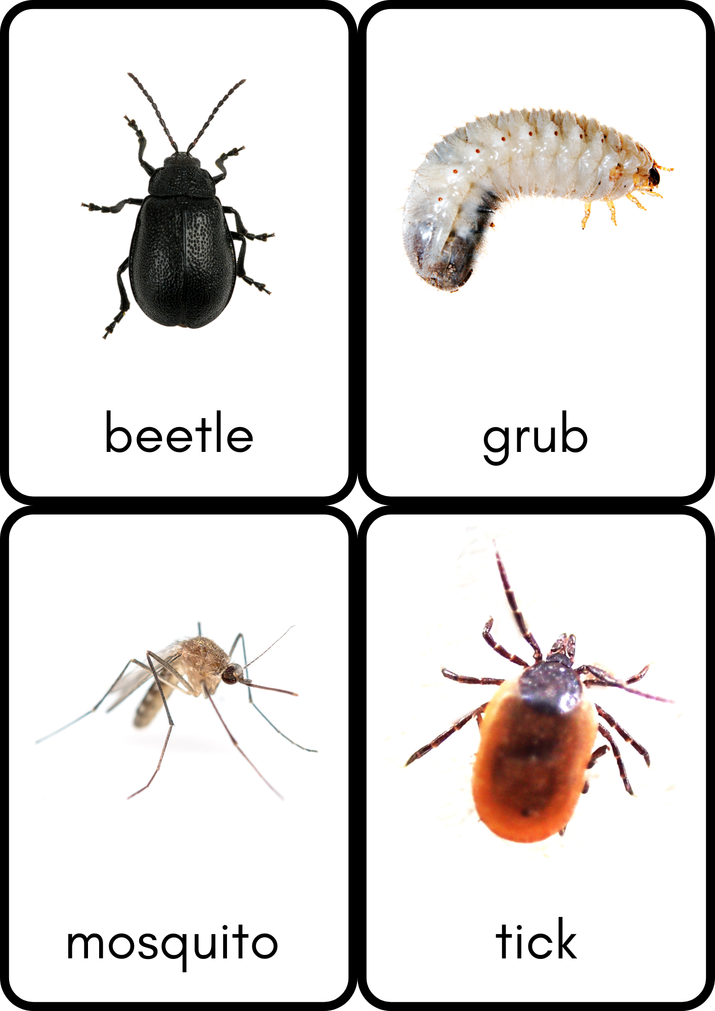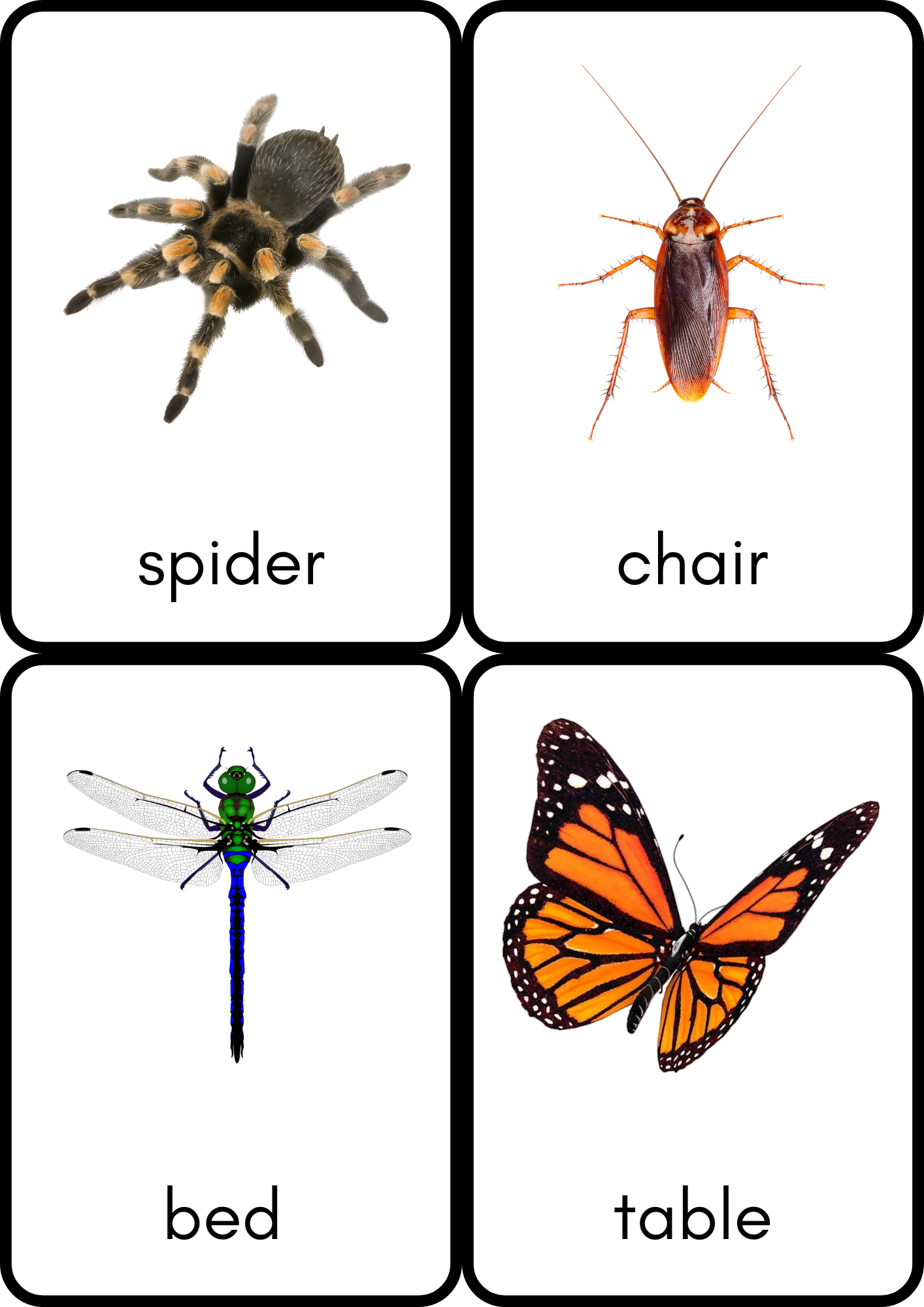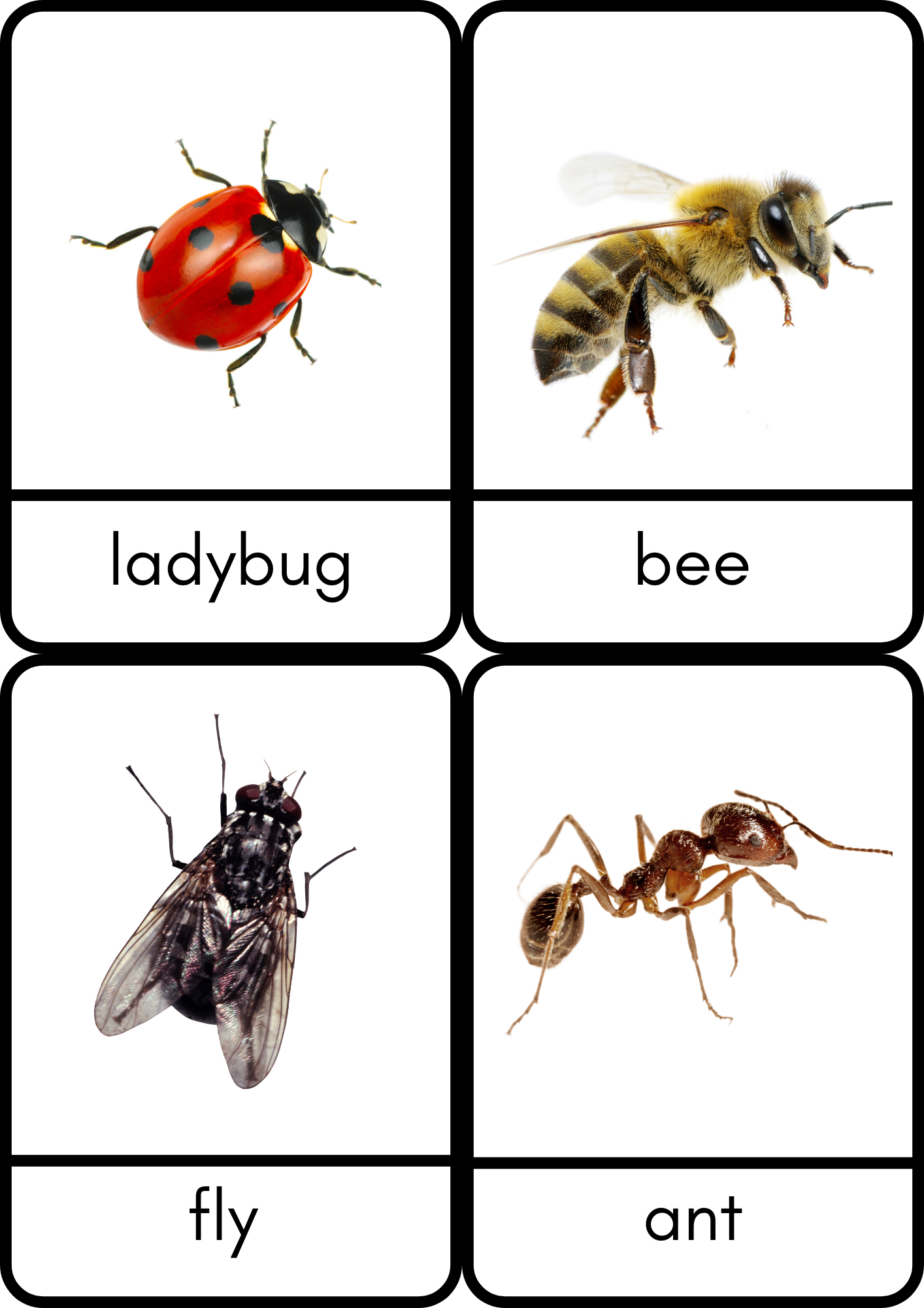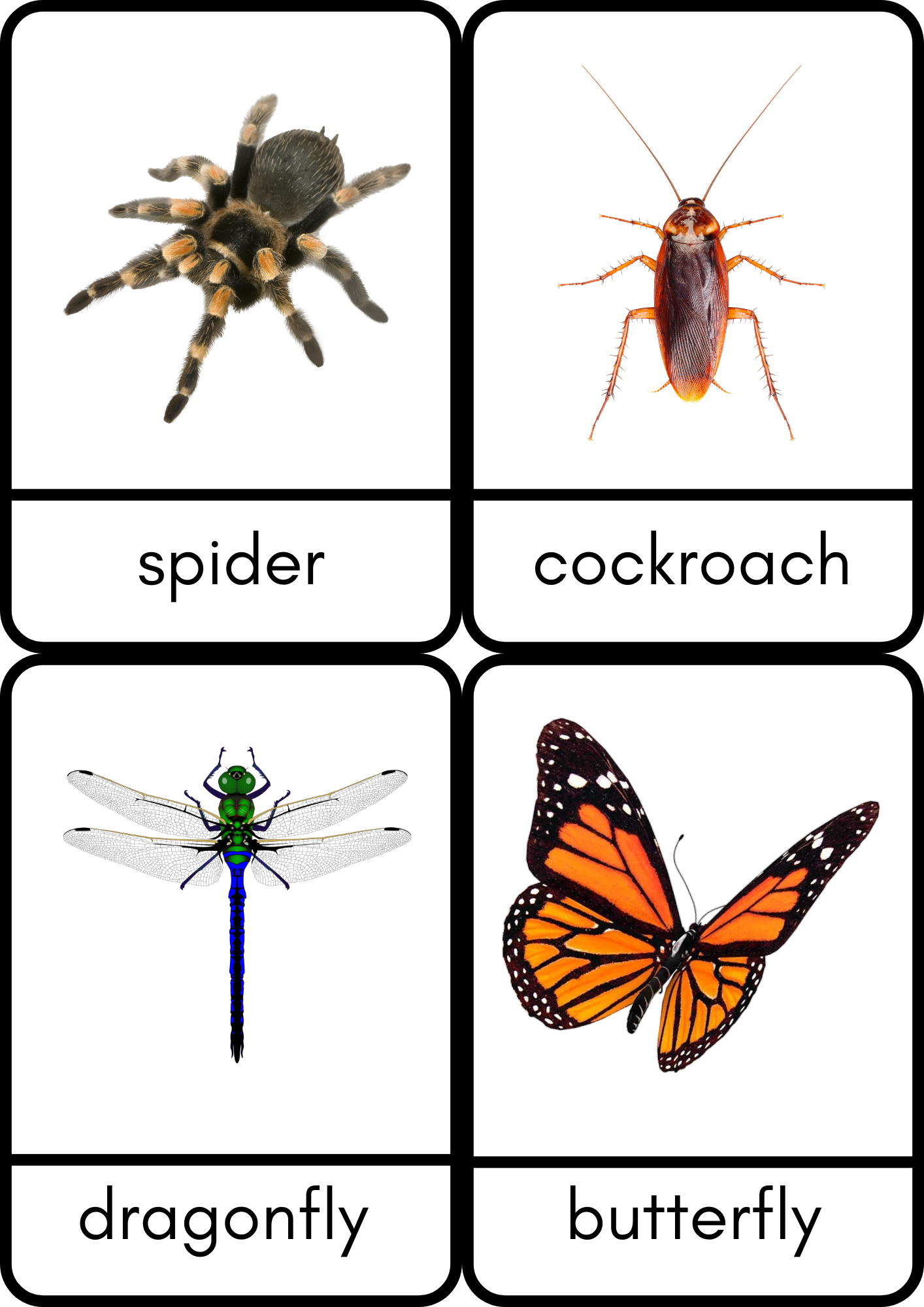Main card: Features a picture of an insect with its name written clearly underneath.