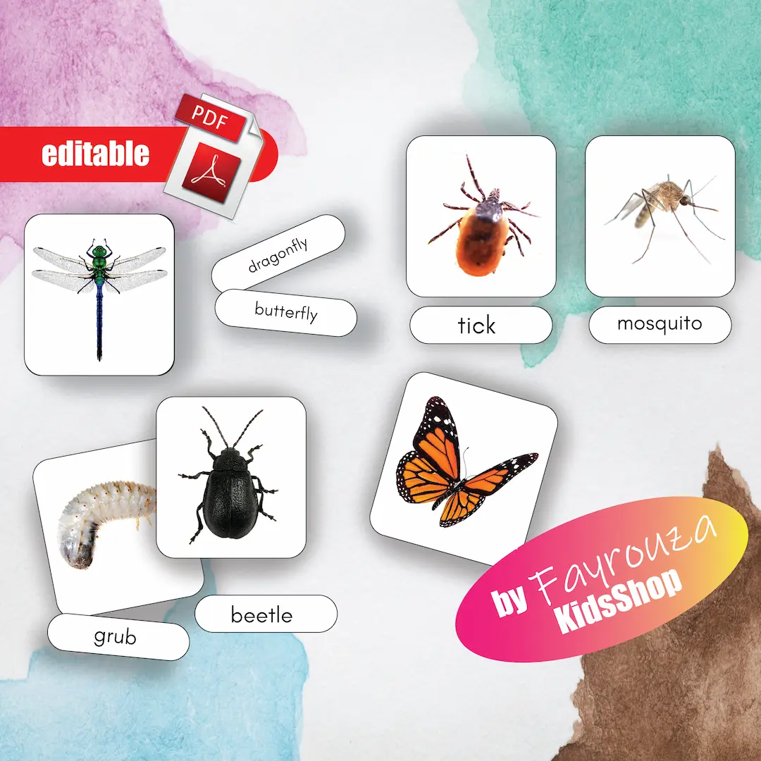 This educational set helps children learn the names of different insects in a fun and interactive way.