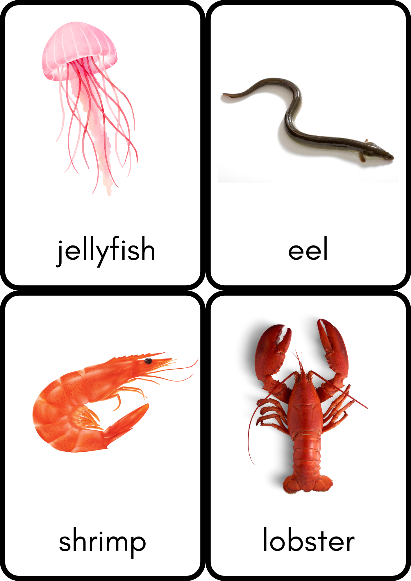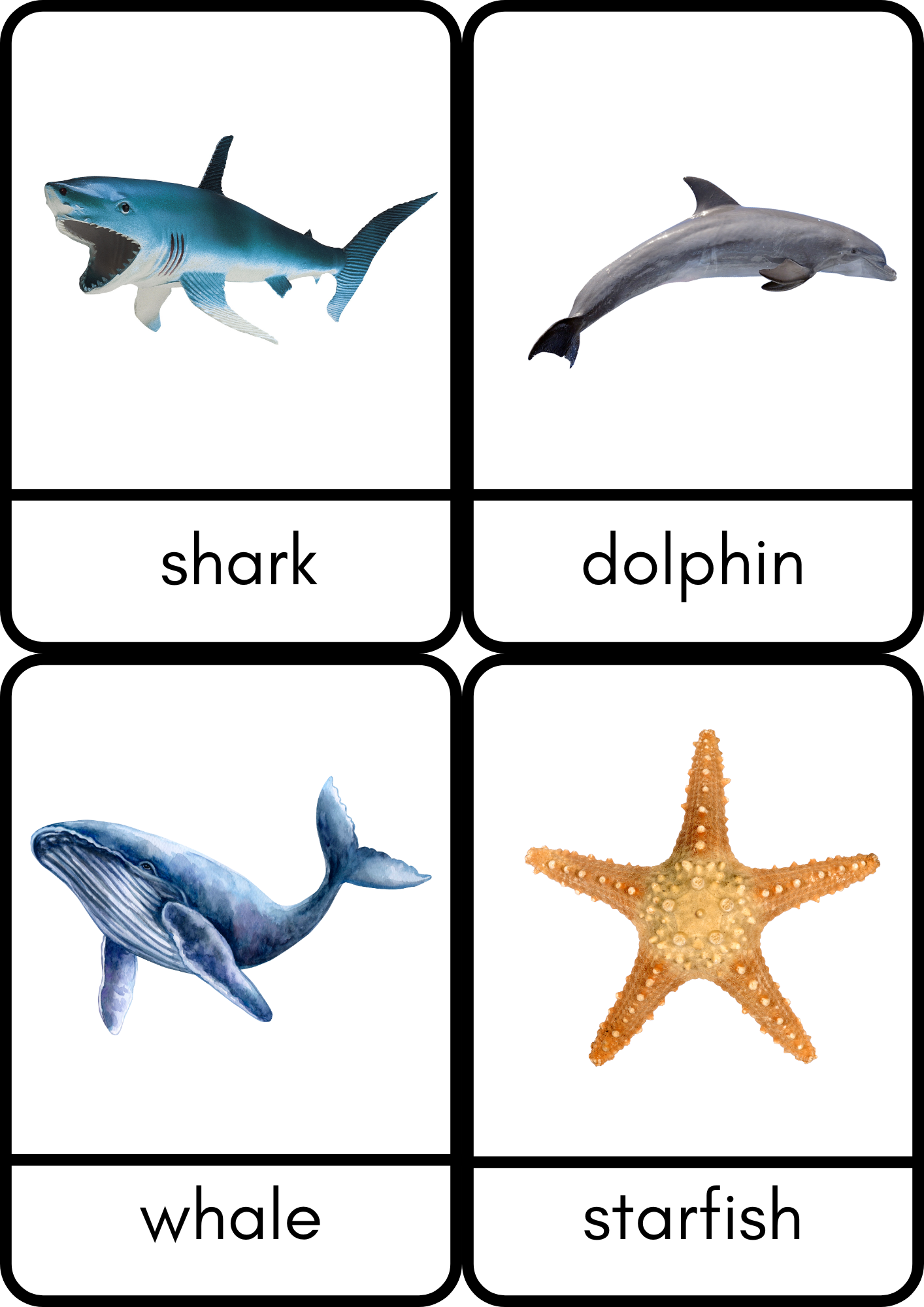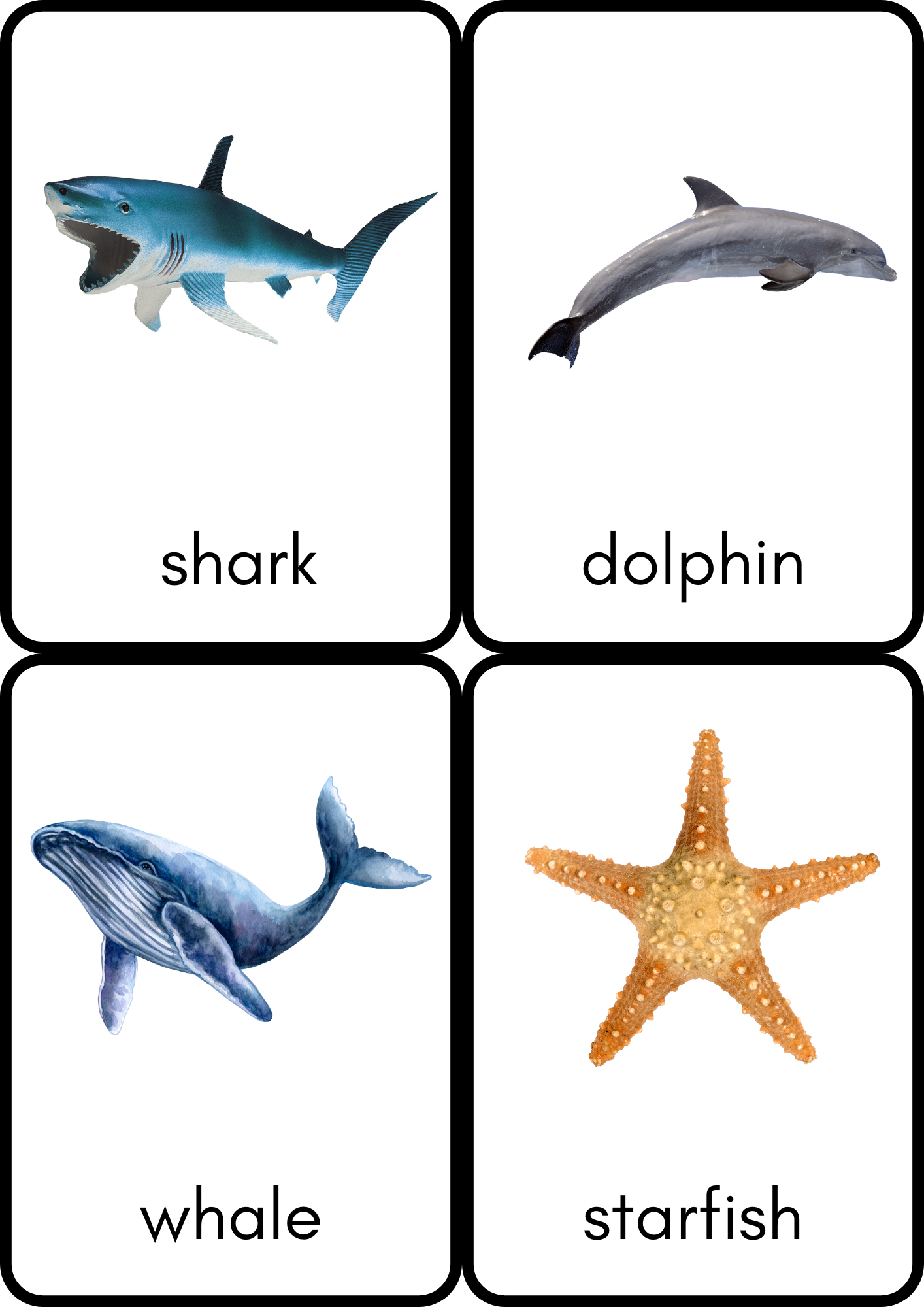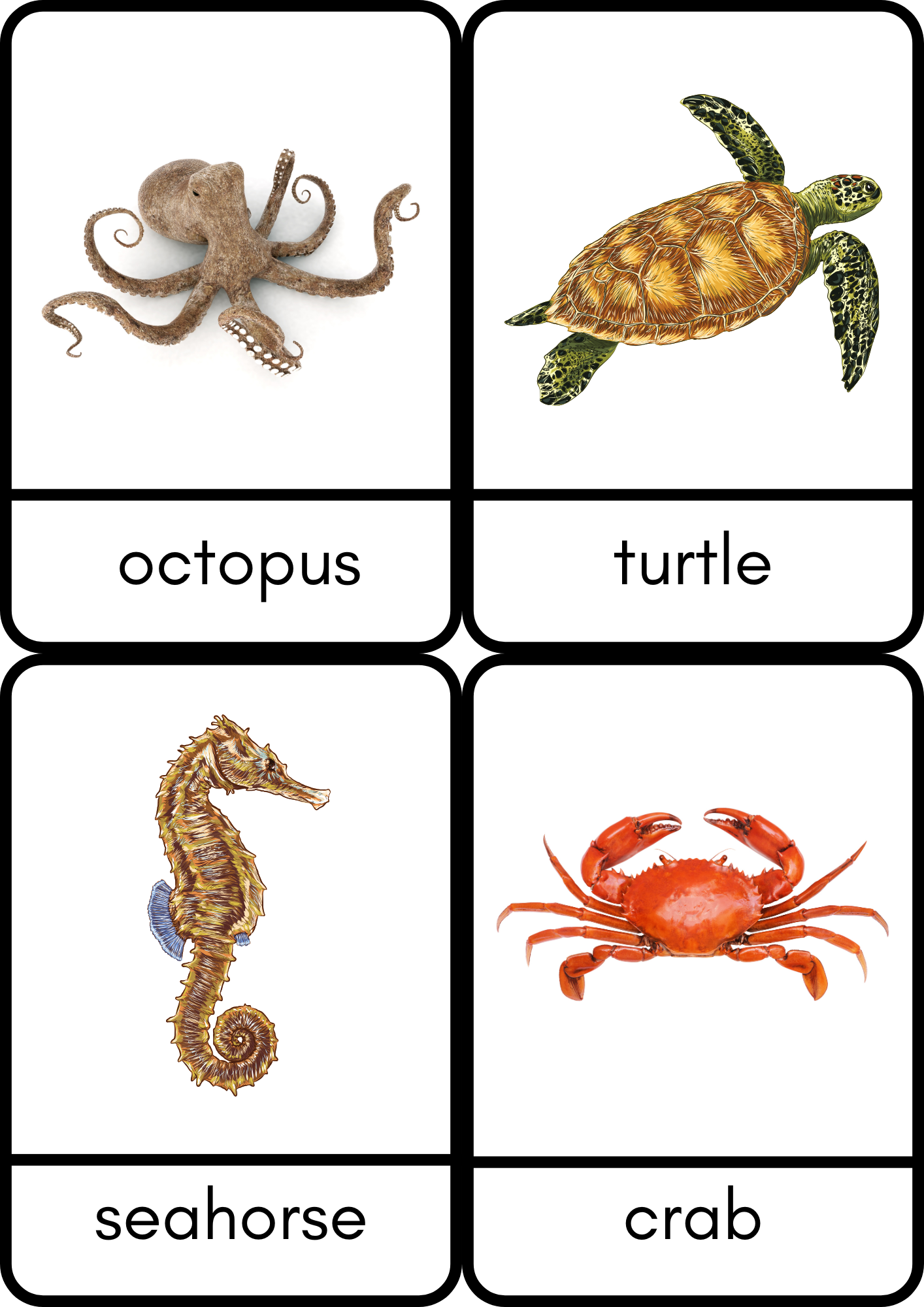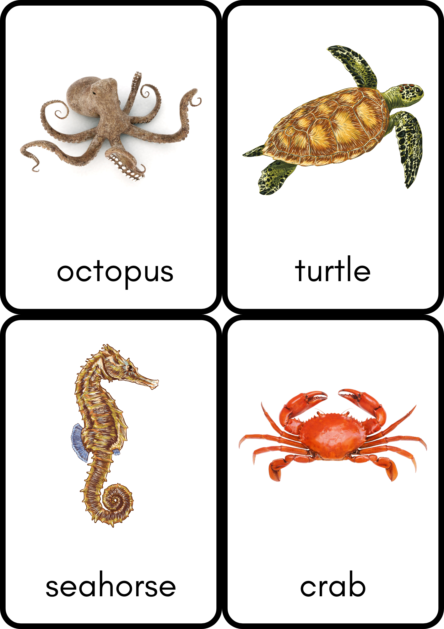 Main card: Features a picture of a sea animal with its name written clearly underneath.