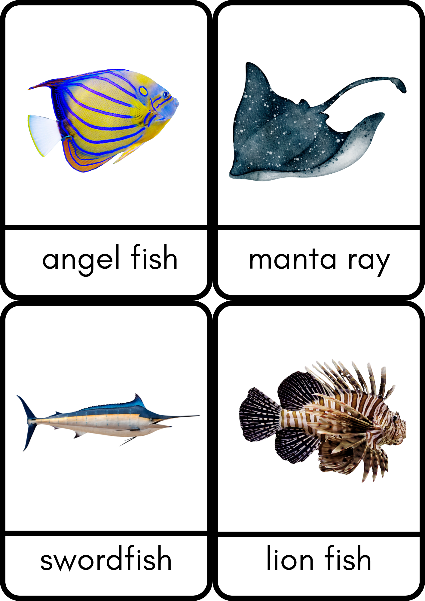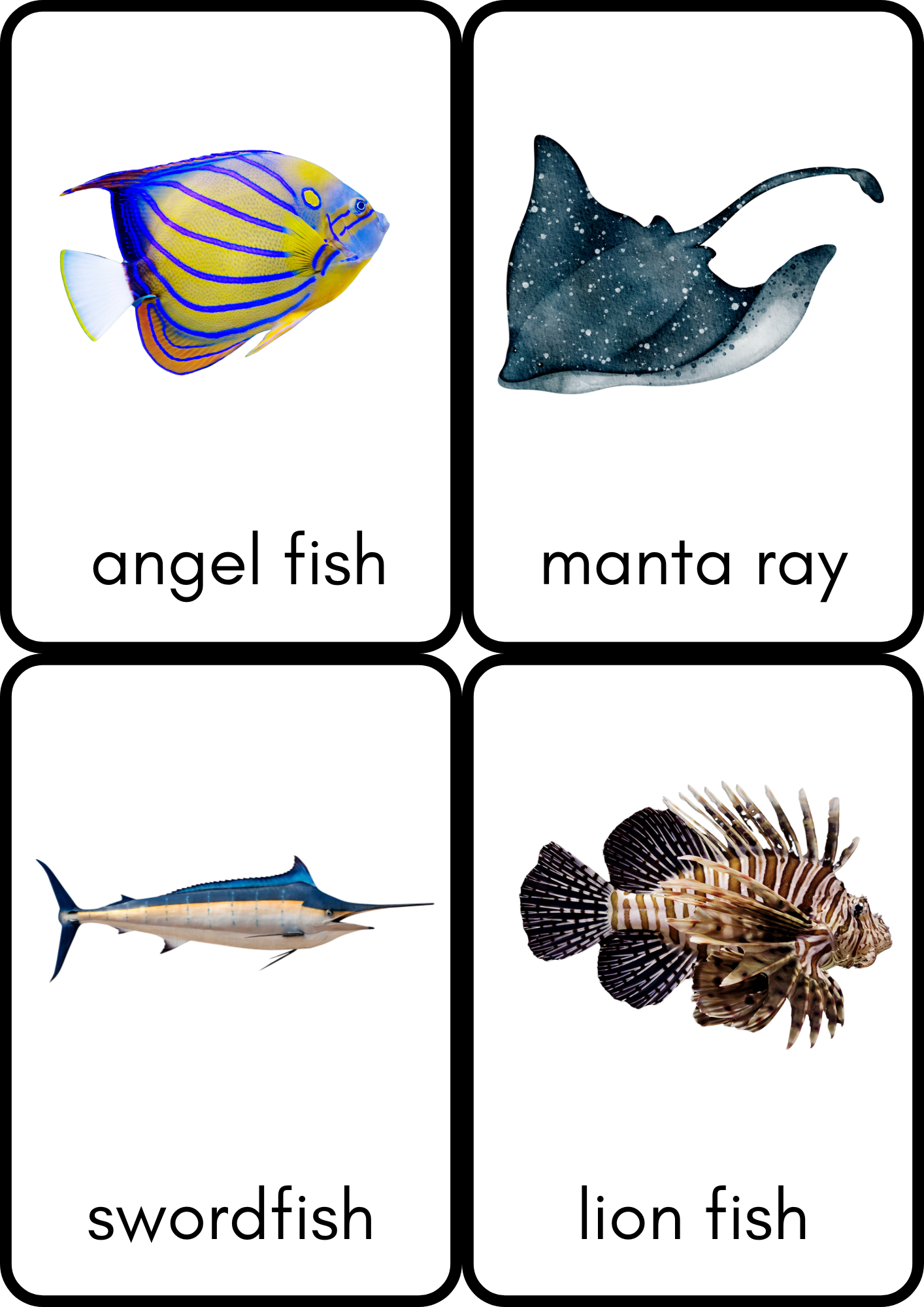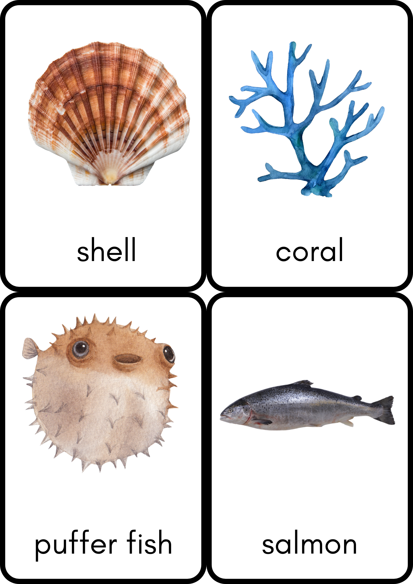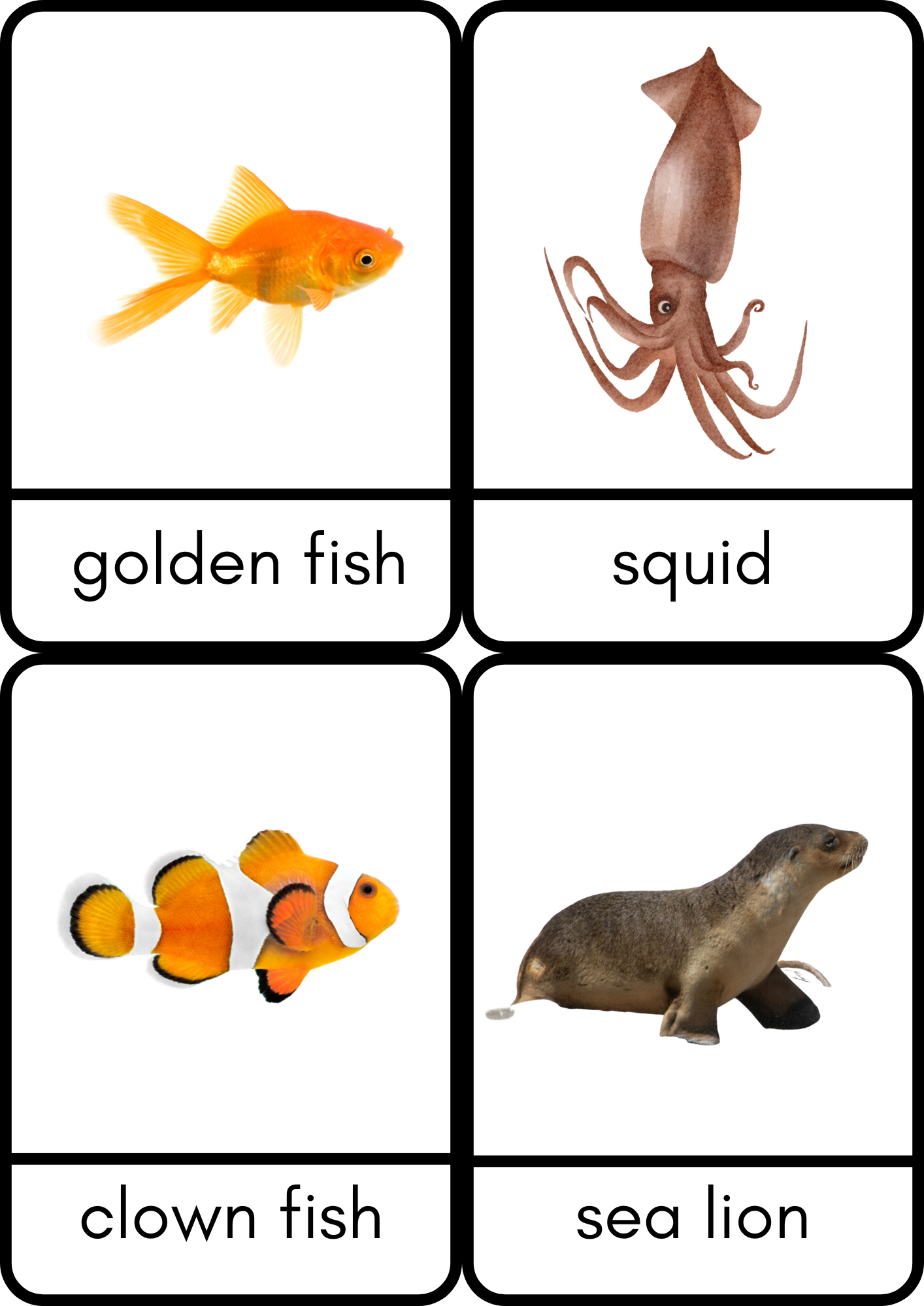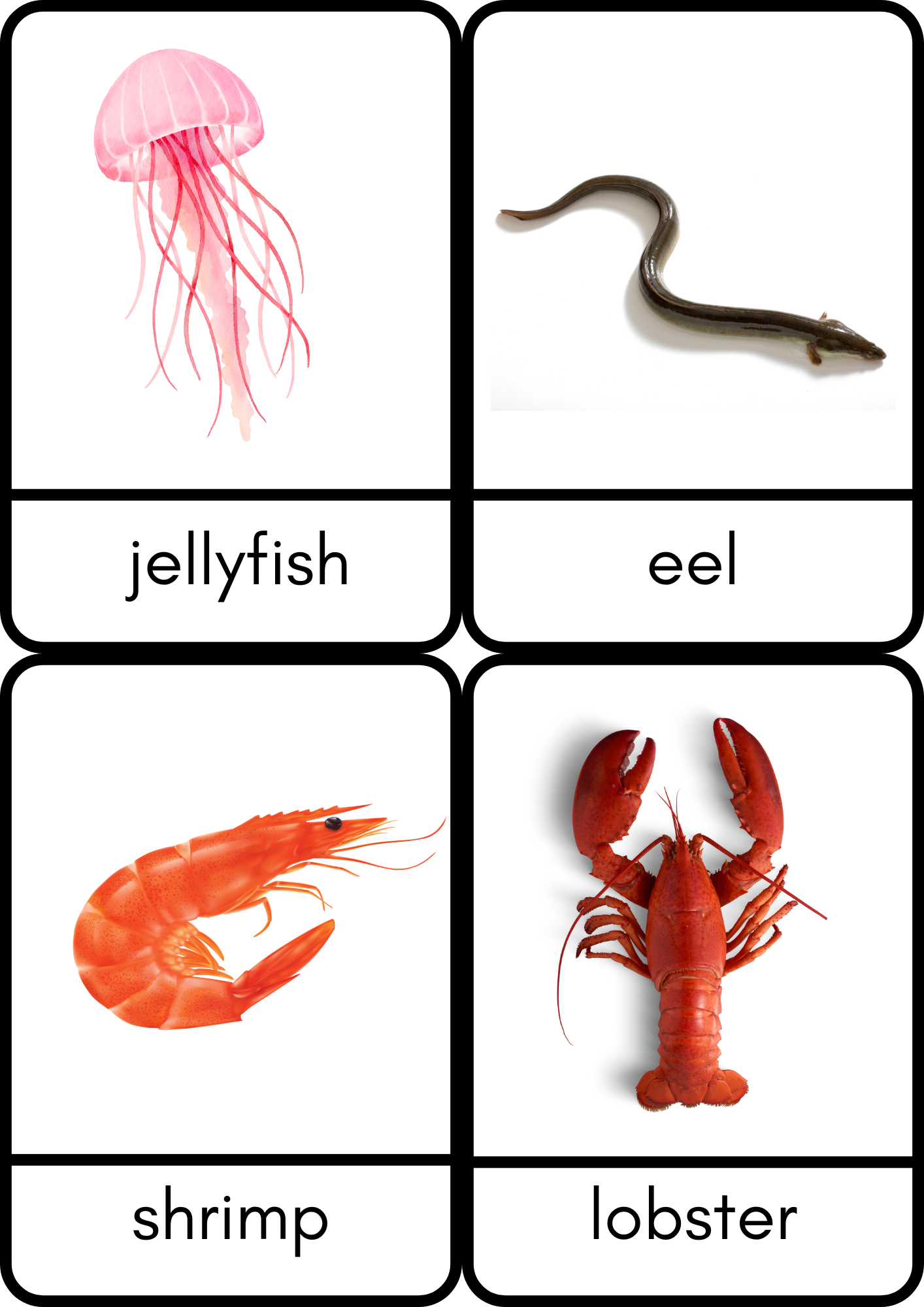 Main card: Features a picture of a sea animal with its name written clearly underneath.