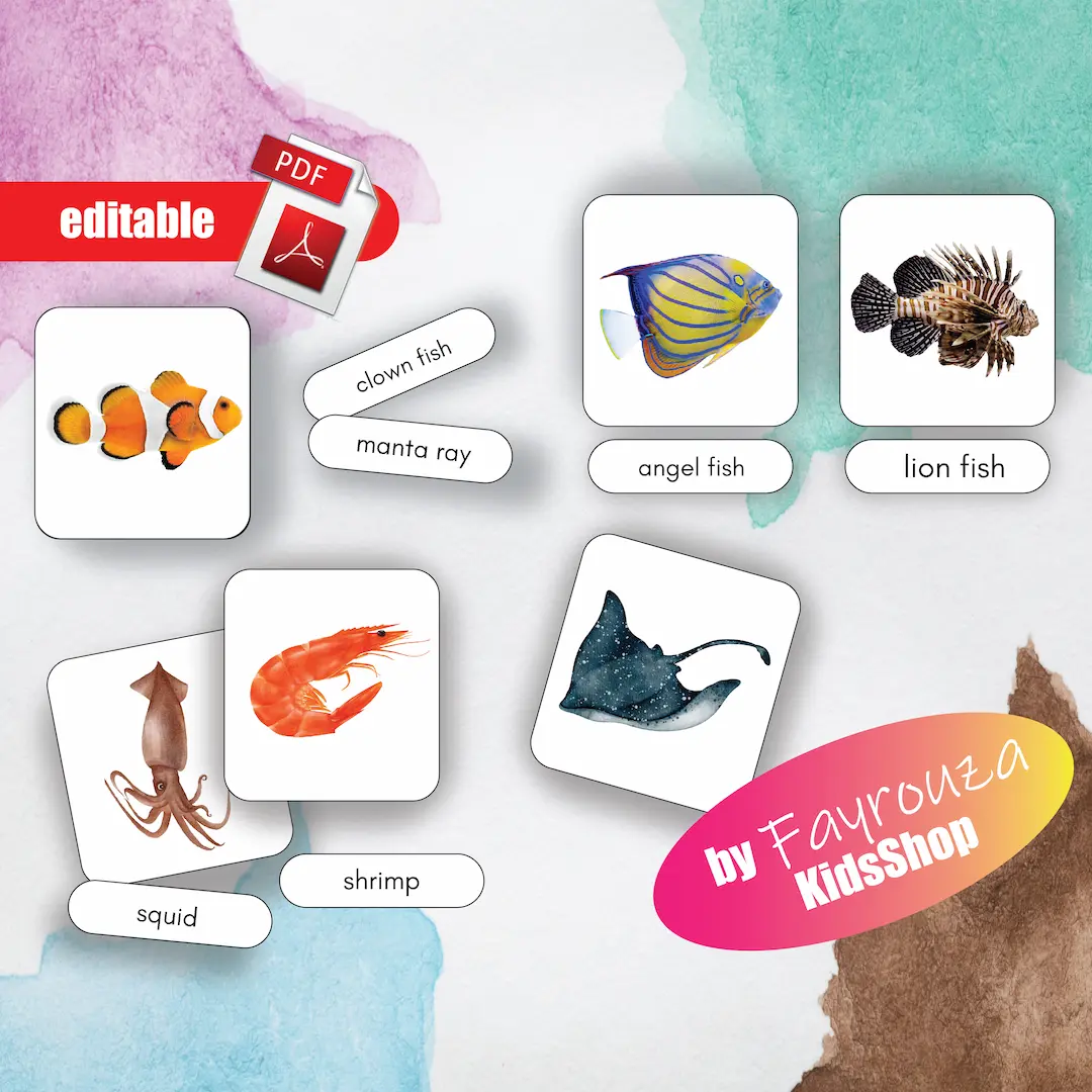 This educational set helps children learn the names of various sea animals in an engaging, hands-on way.