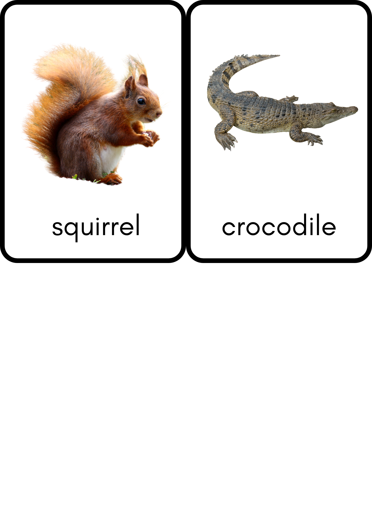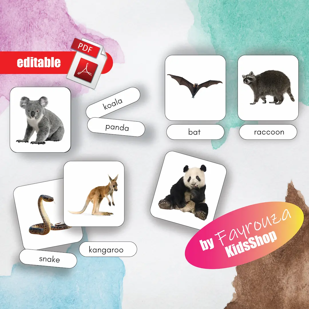 Interactive matching cards that help kids learn wild animal names and connect words with pictures through playful learning.