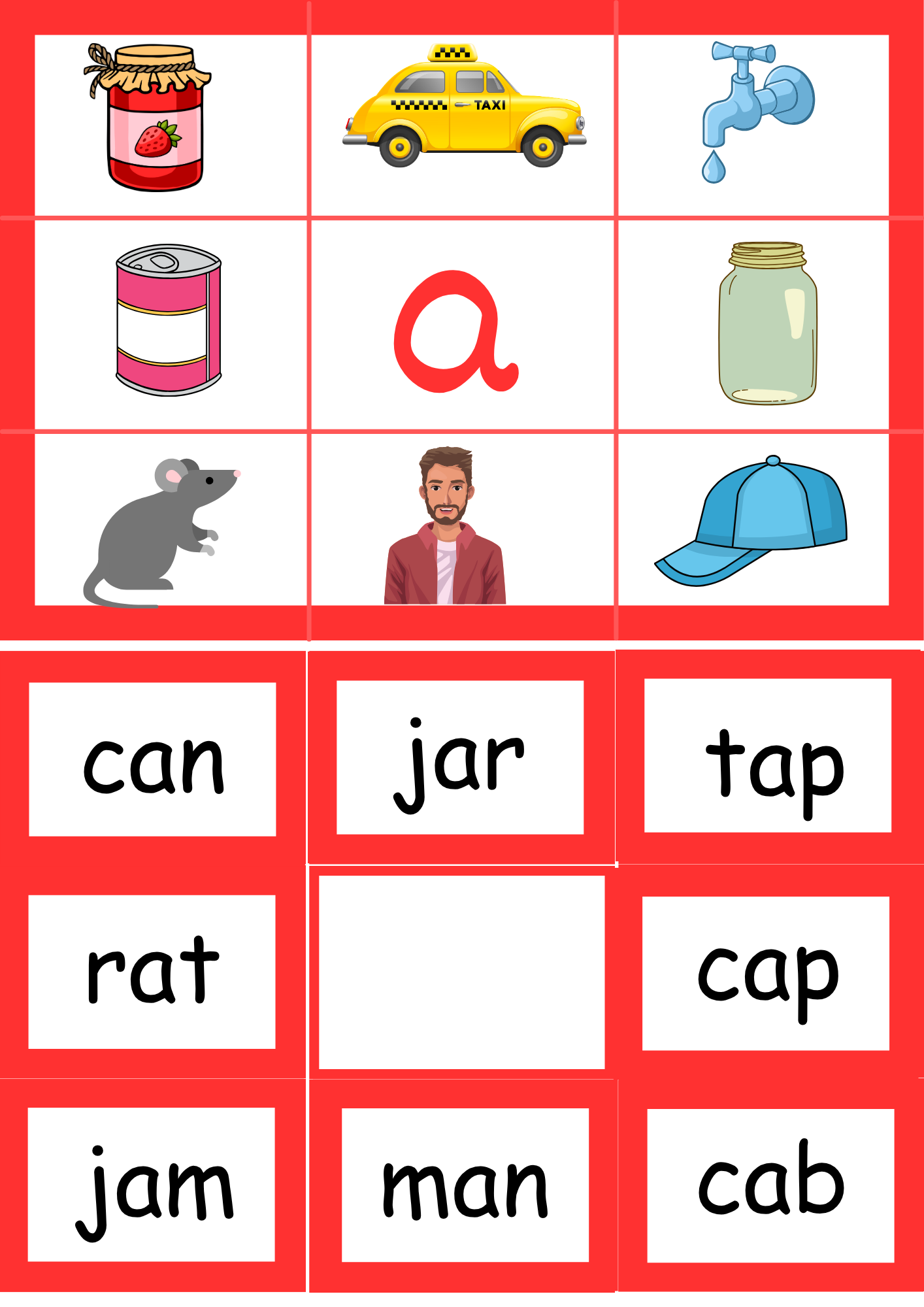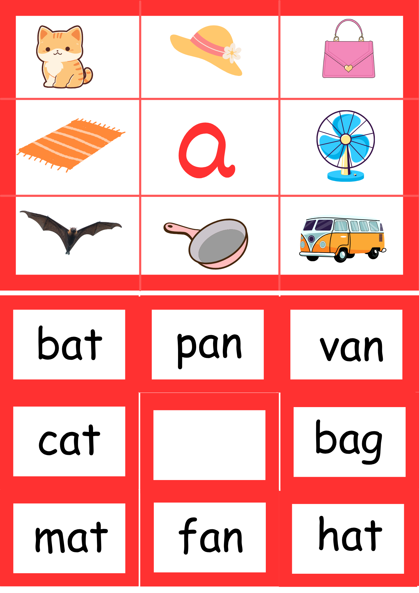 .vowel (e.g., “cat,” “hat,” “bat” for the short a sound)