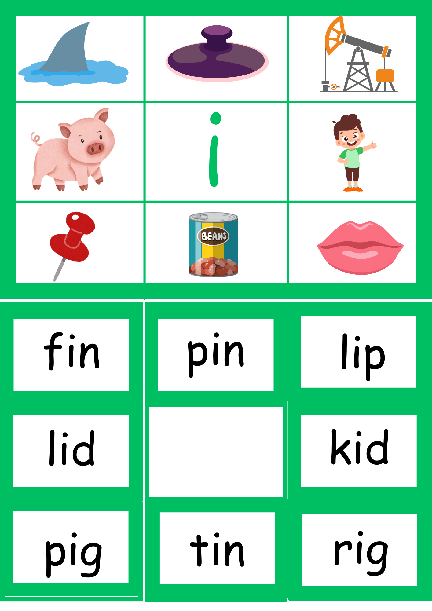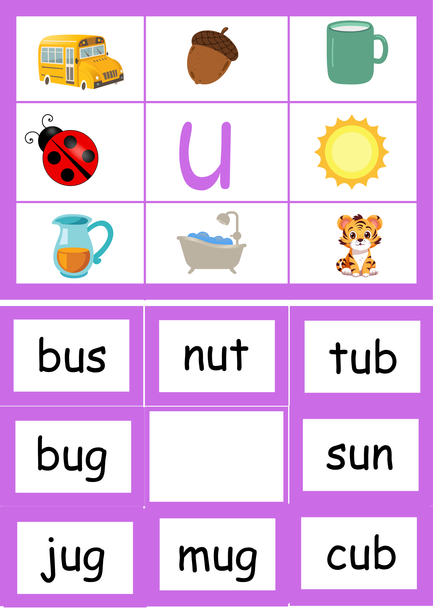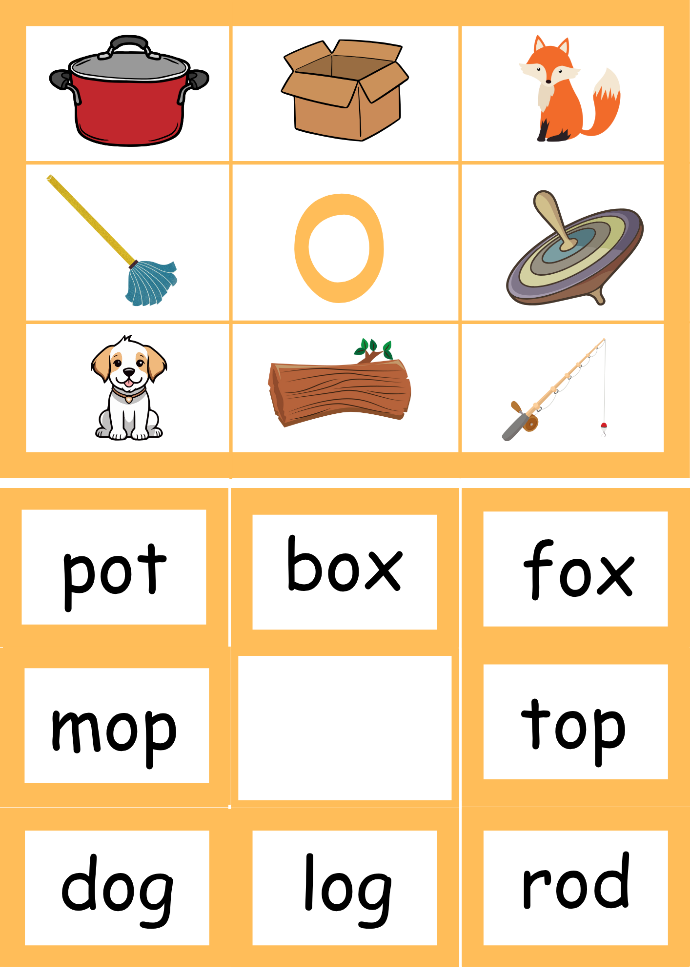 The activity encourages children to match each picture to its corresponding word, reinforcing phonics skills, vocabulary development, and word