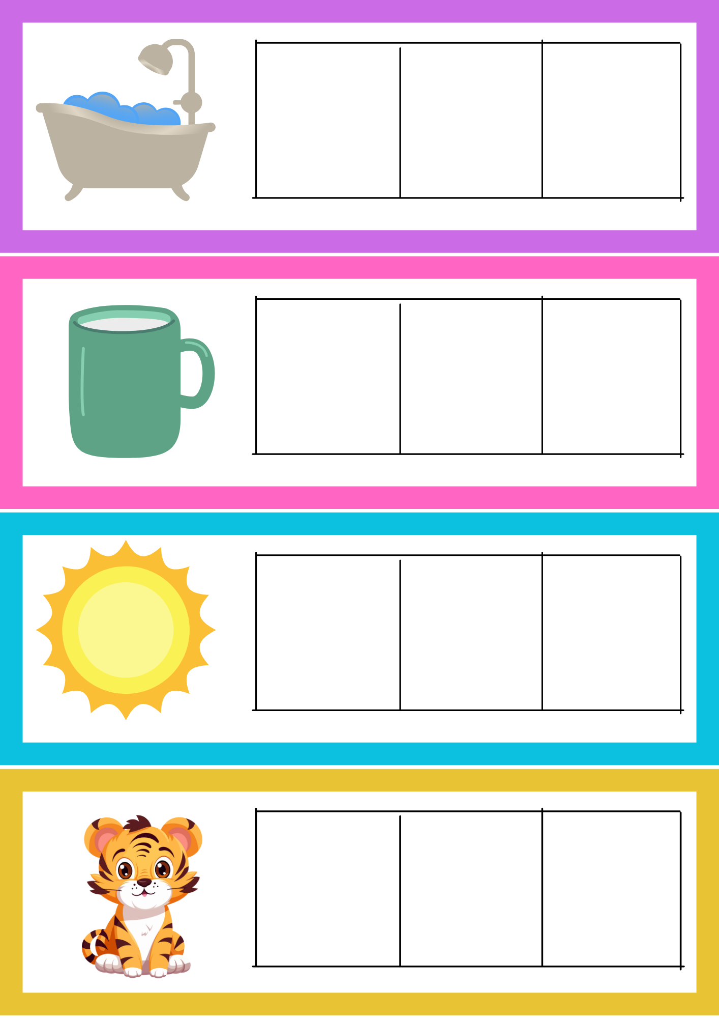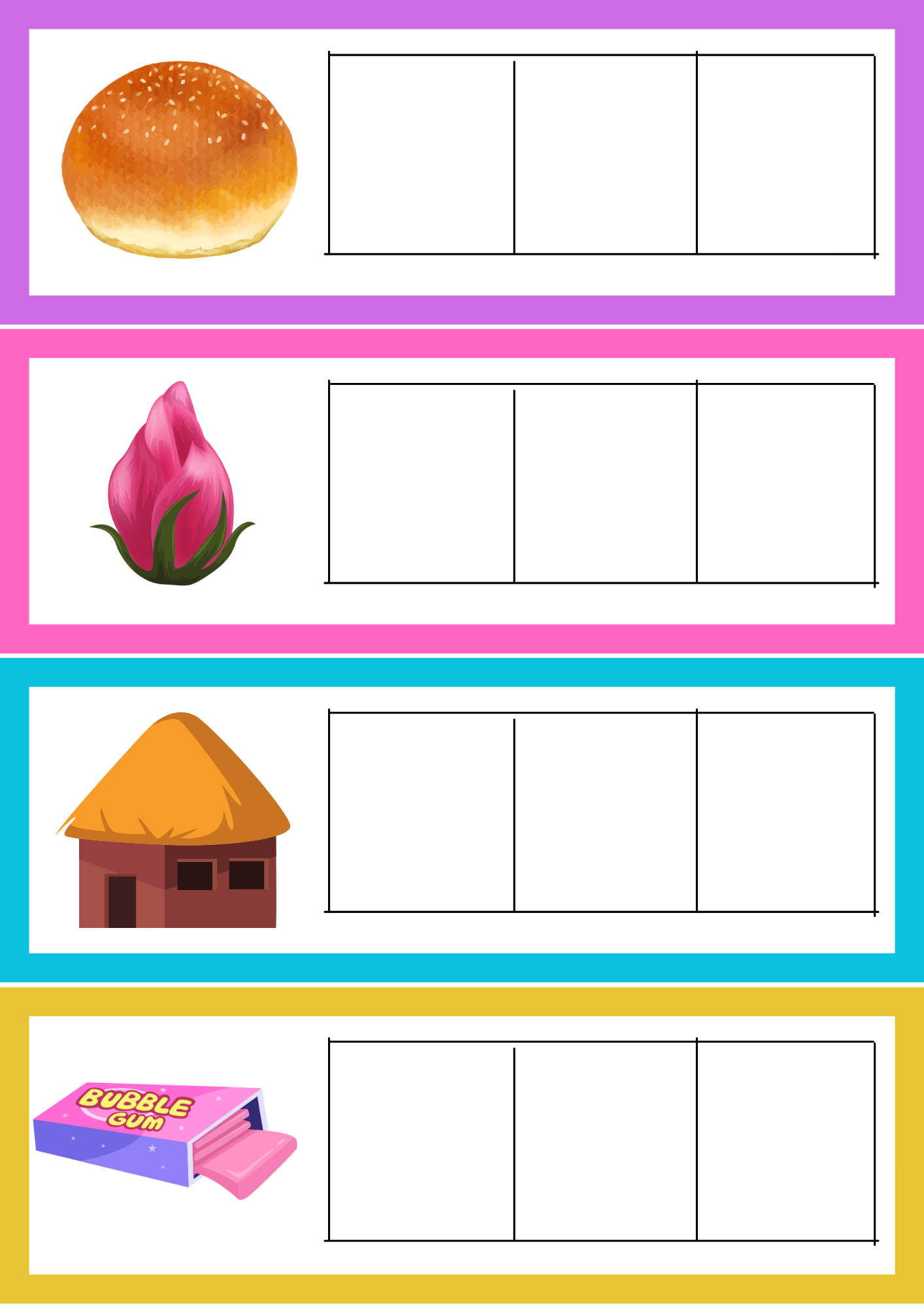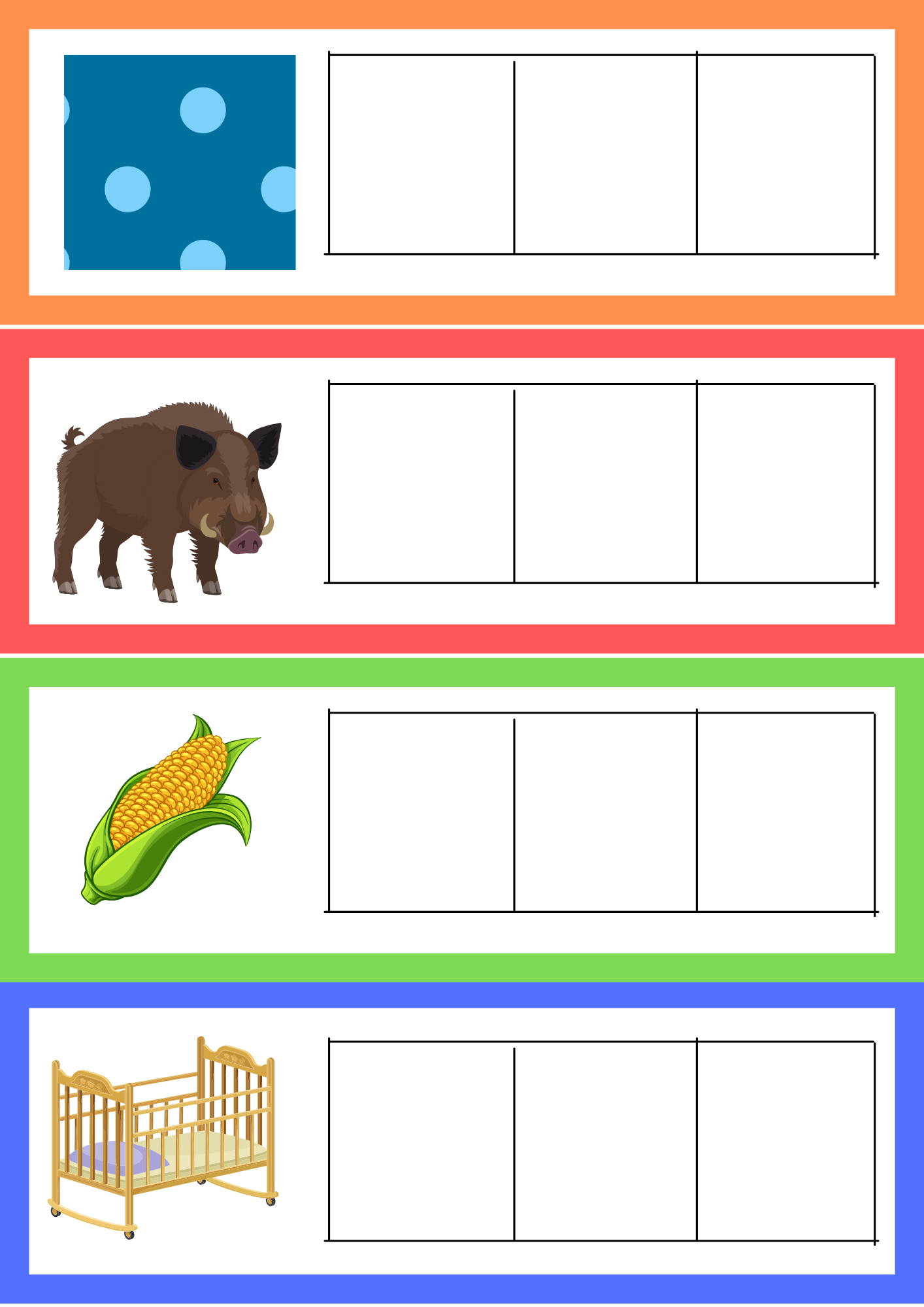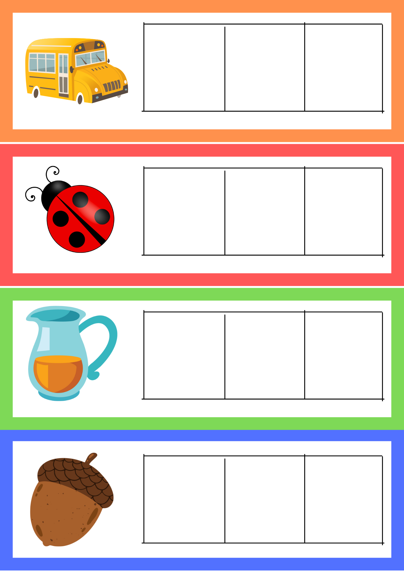 Three Blank Spaces: A designated area for the child to write the eve word corresponding to the picture.