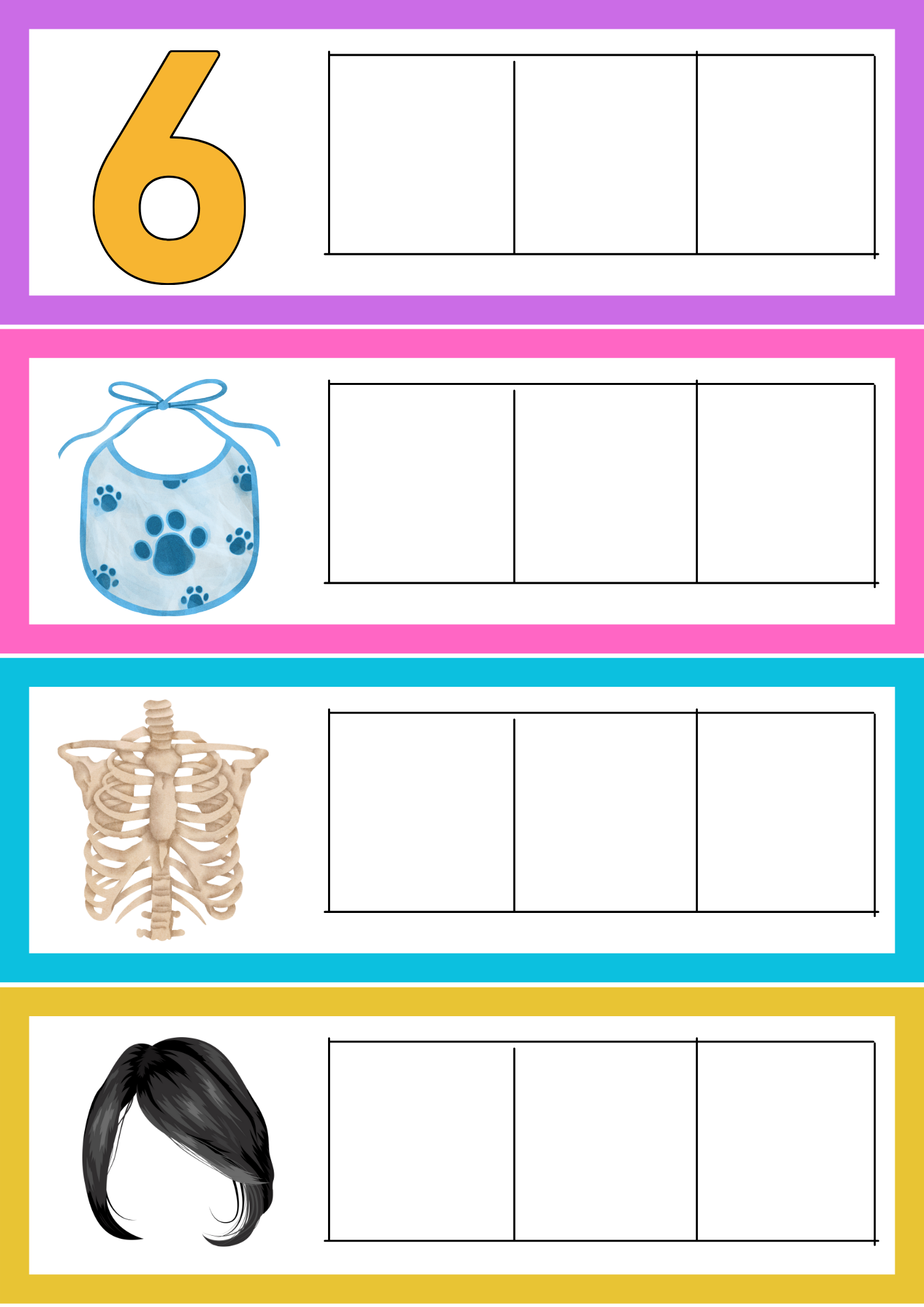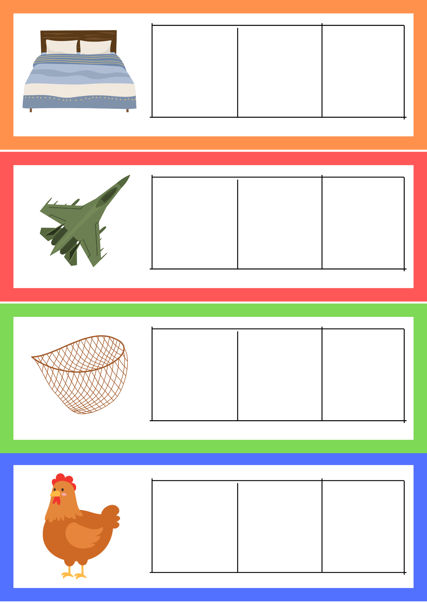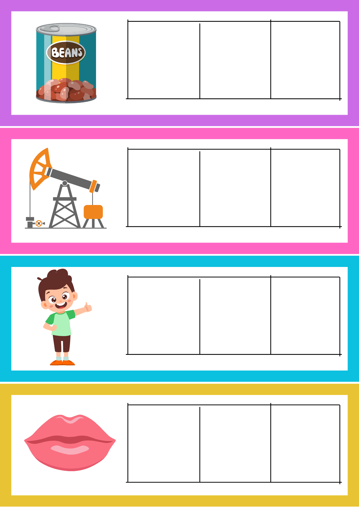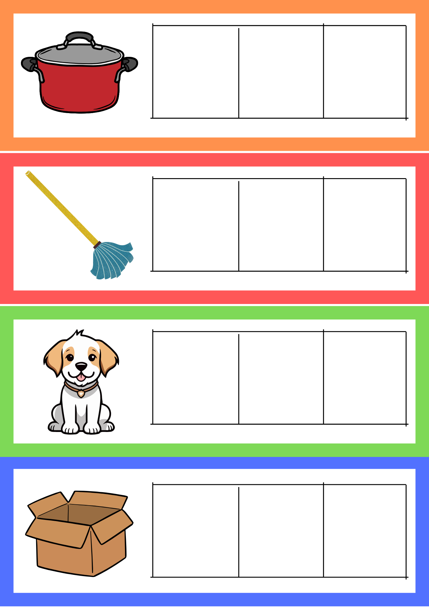 Three Blank Spaces: A designated area for the child to write the eve word corresponding to the picture.