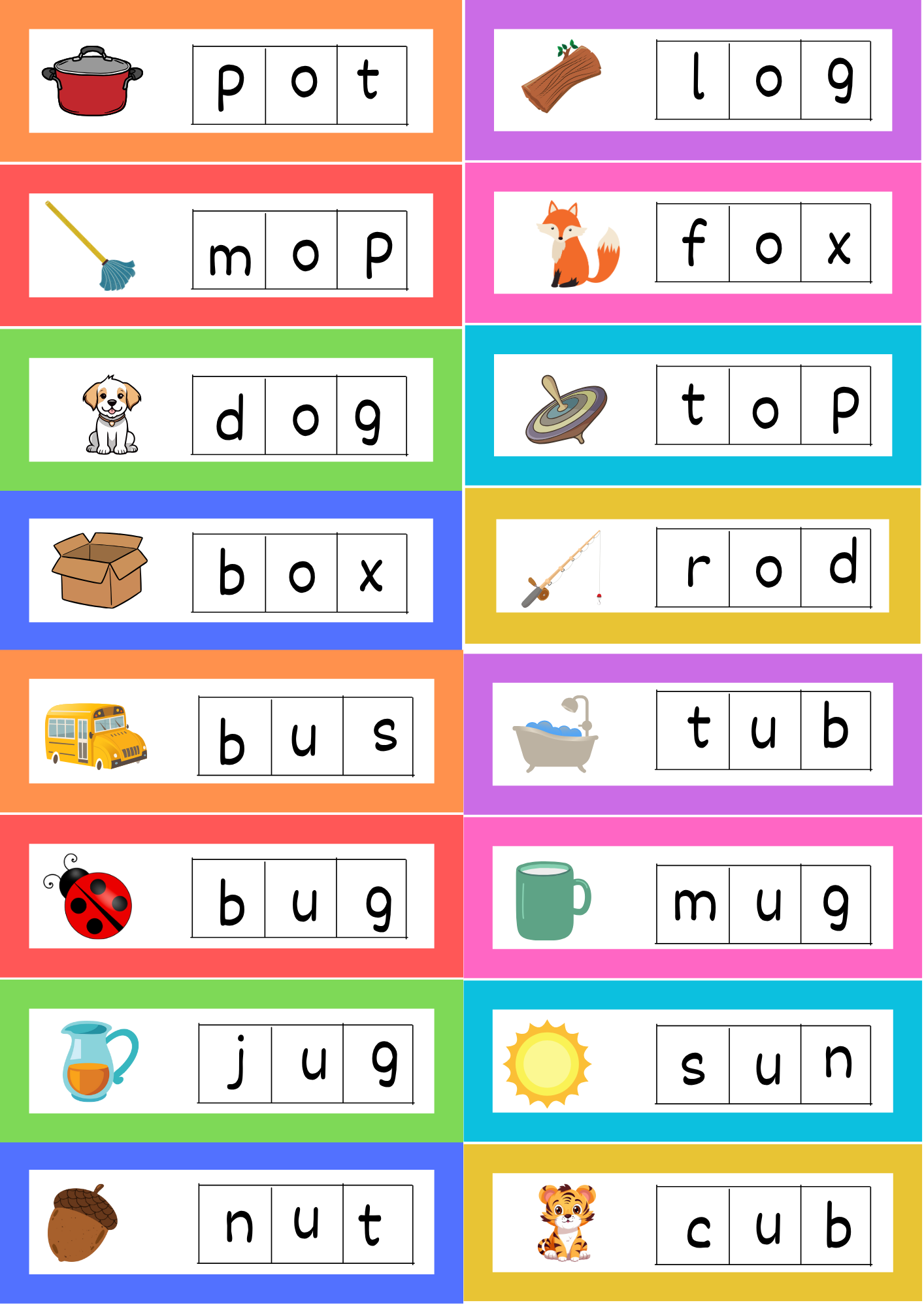 Solution Guide Cards: Small cards that provide the correct spelling of each word to assist with self-checking or guided learning.