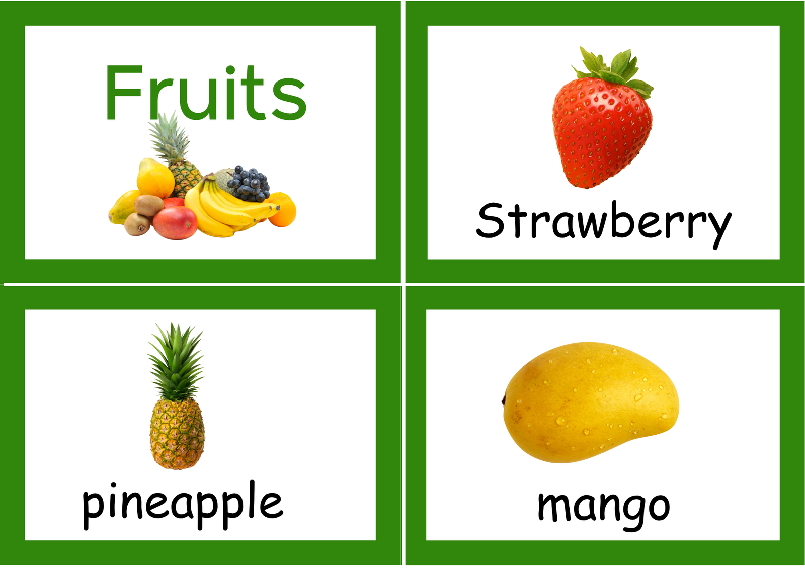 A compact and practical educational booklet featuring real-life images of various fruits.