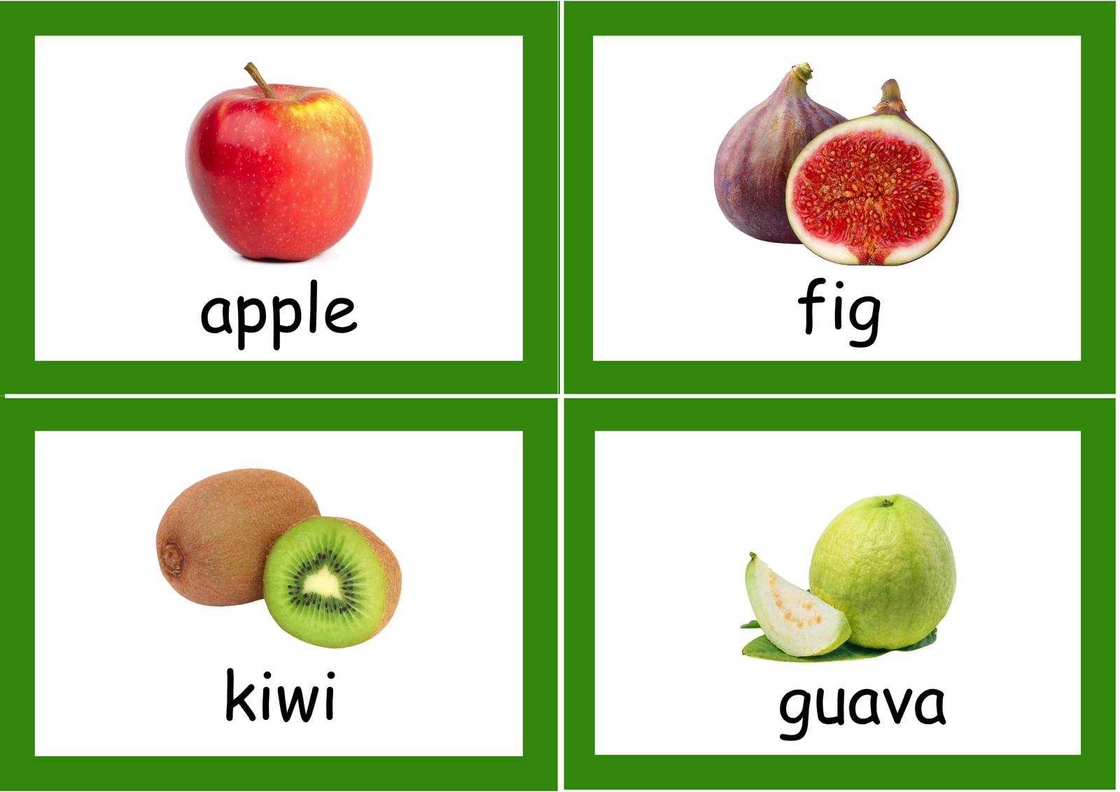 • Teaches identification and naming of common fruits.