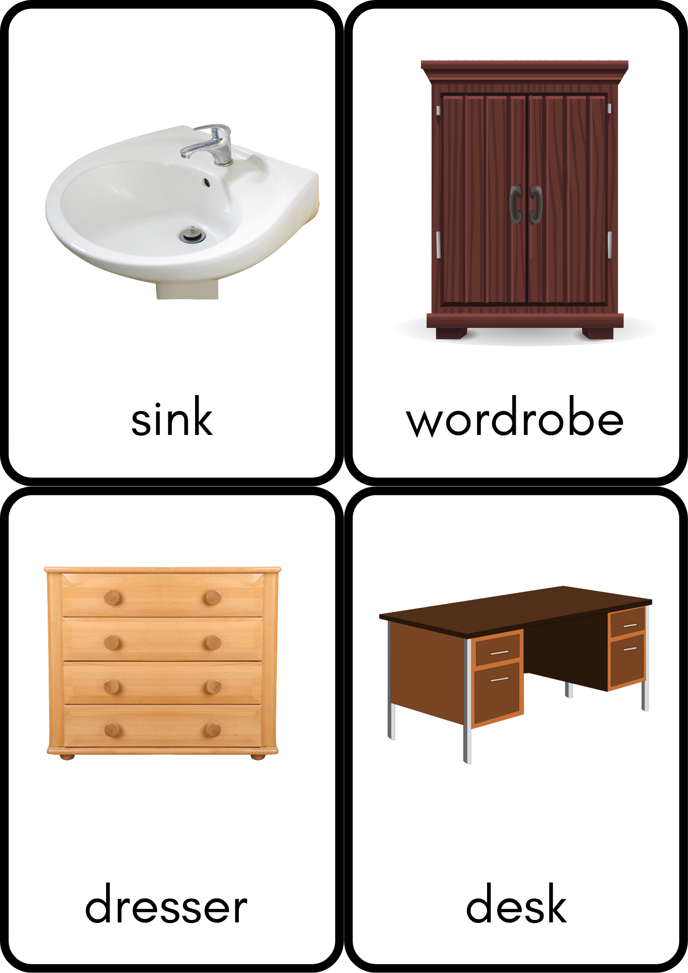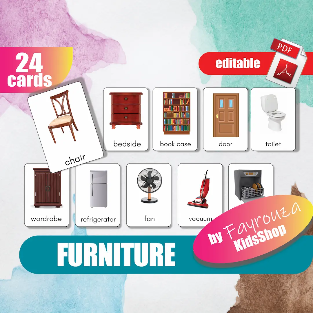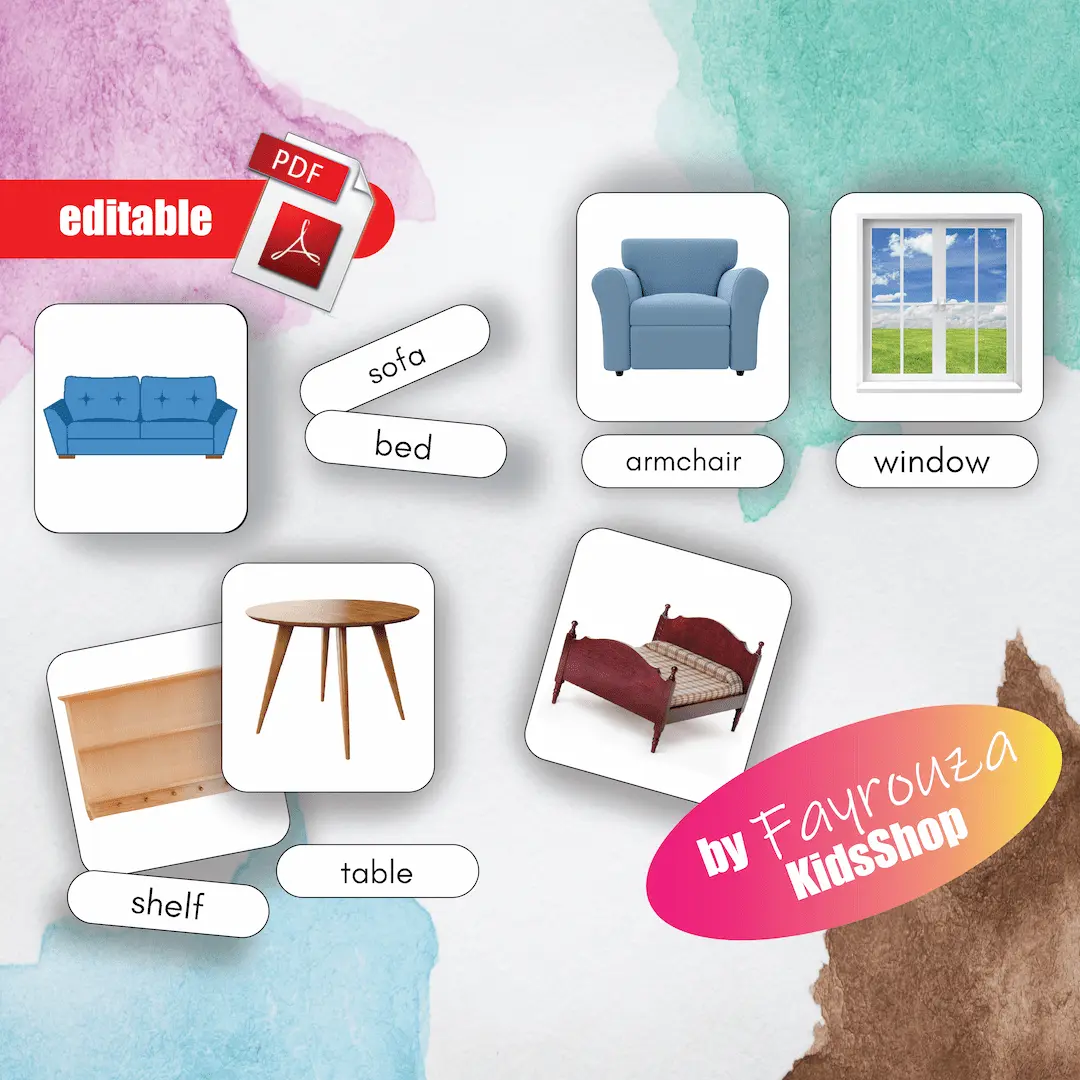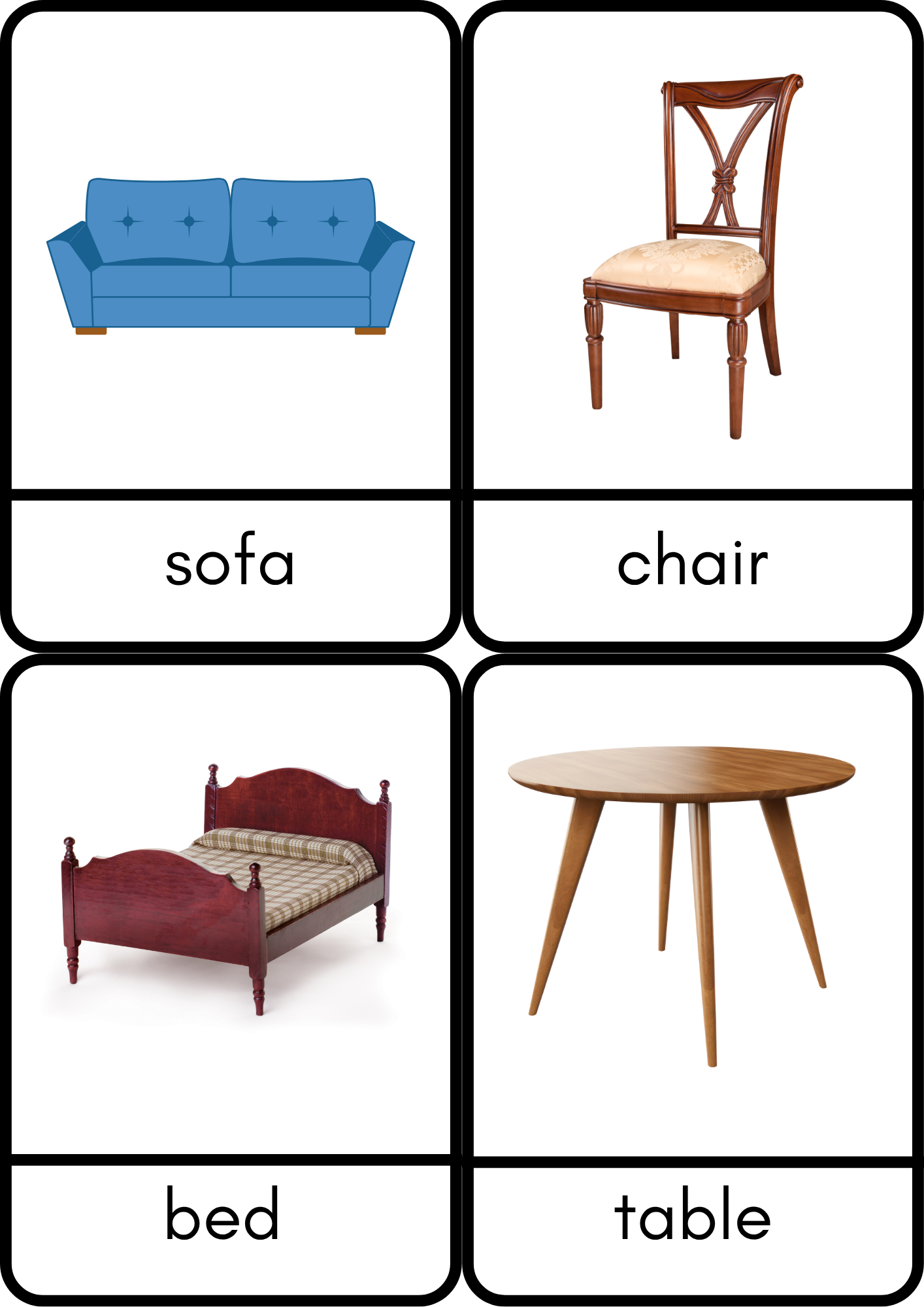 This educational set helps children learn the names of different furniture items in a fun and interactive way.