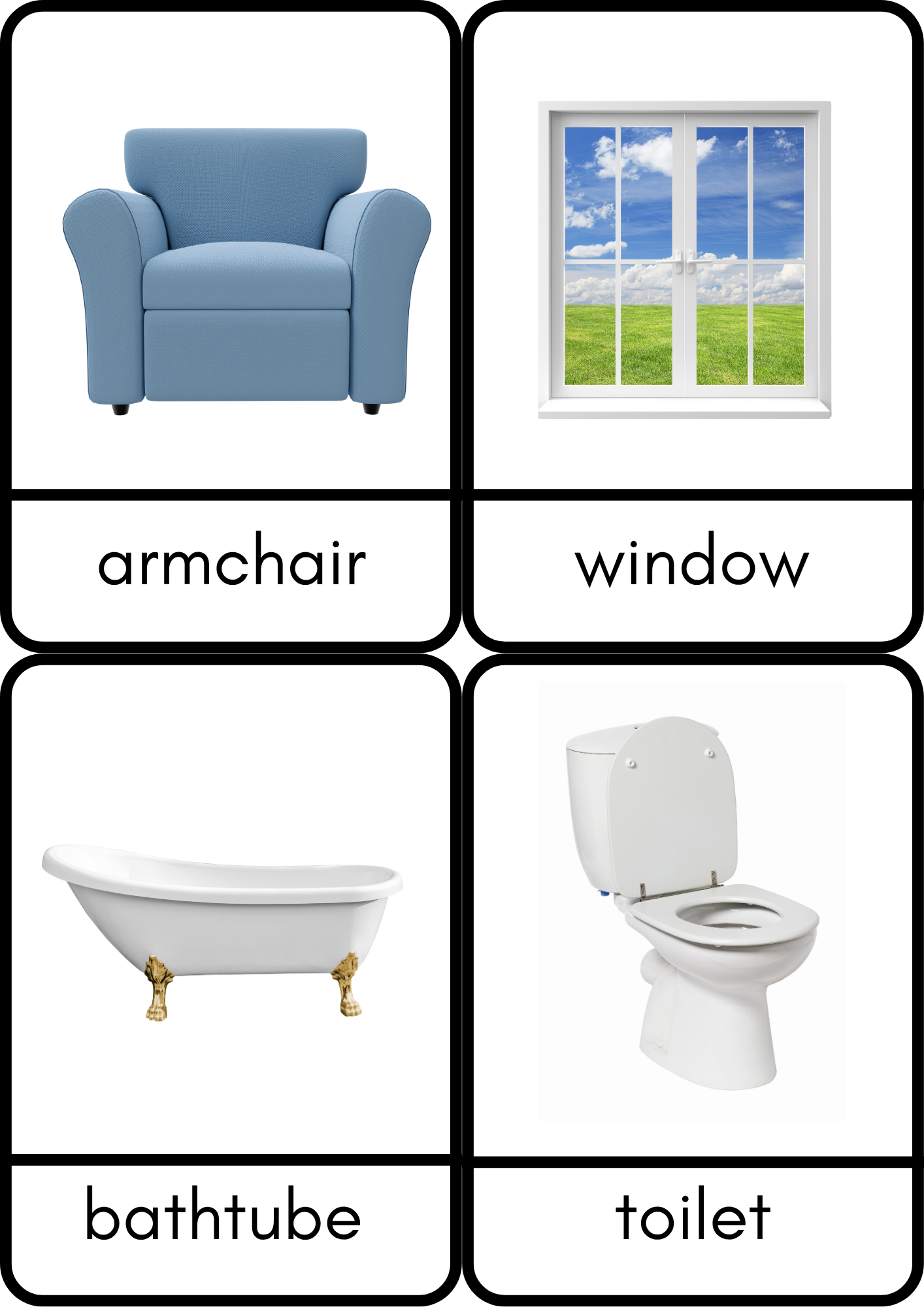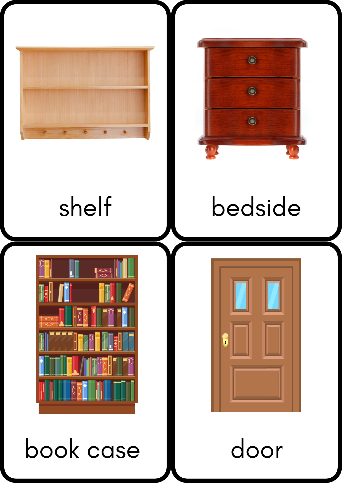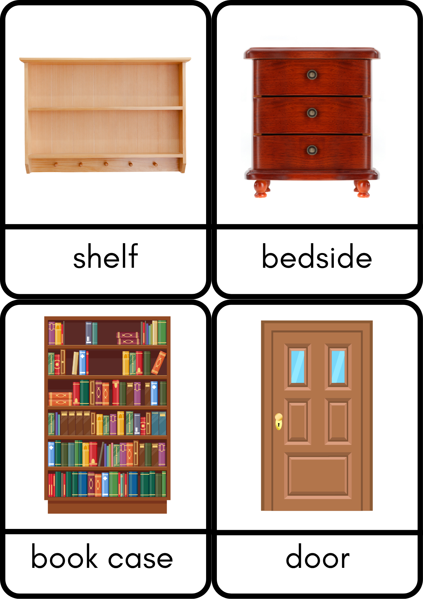 This educational set helps children learn the names of different furniture items in a fun and interactive way.