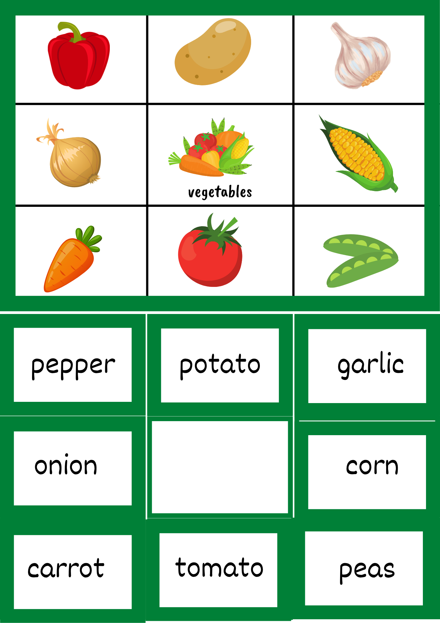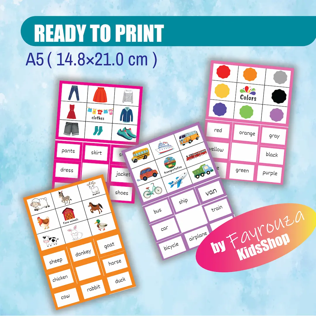 Alongside this, there are small word cards with corresponding vocabulary terms.